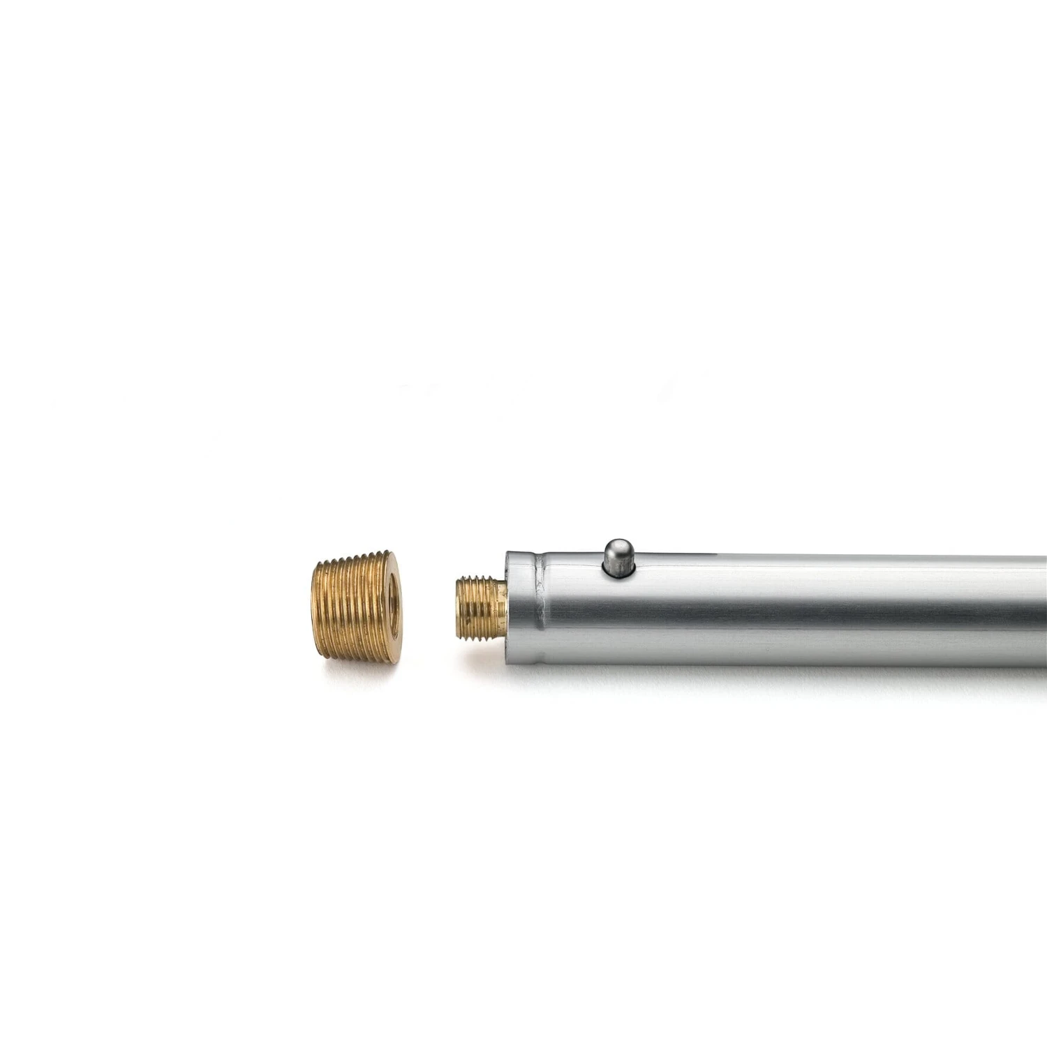 Schafft die Verbindung zwischen Teleskopstange und Aufsatzgeräten mit üblichem Besenstielgewinde. Mit konischem Außengewinde und ¼-Zoll-Innengewinde.