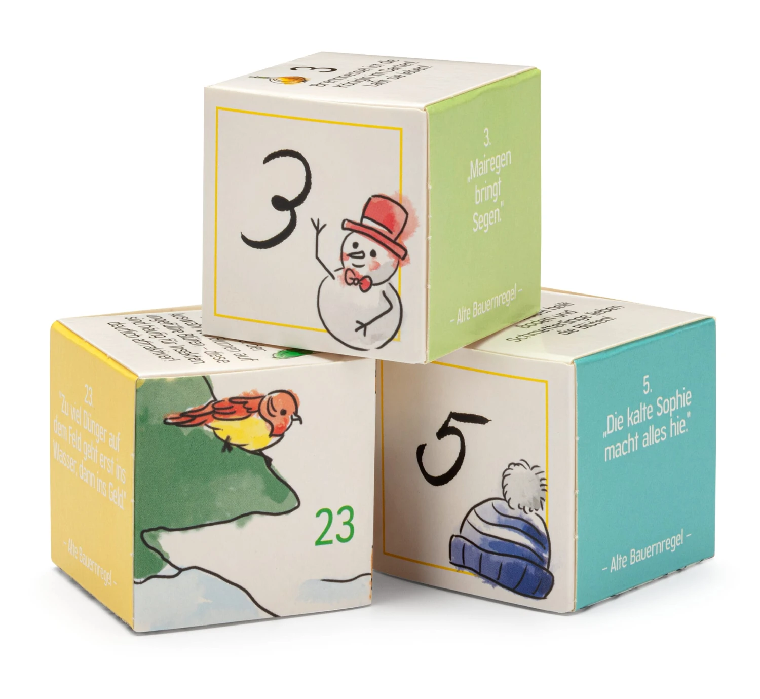 (Nicht nur) Für Gemüsegärtner*innen: Mit diesem Saatgut-Adventskalender verschenken Sie 24 Mal Vorfreude – auf das Weihnachtsfest ebenso wie auf eine mit reicher Ernte gesegnete Garten- und Balkonsaison im nächsten Jahr. Vom 1. bis zum 24. Dezember jeden Tag eine neue Sorte: von Tomatillo bis Grünkohl, von Grill-Auberginen bis hin zu Salat-Mischungen und essbaren Dahlien reicht die Auswahl, sodass bis weit in die zweite Saisonhälfte hinein ausgesät und geerntet werden kann. Das Bio-Saatgut stammt sämtlich aus heimischem Anbau im Raum Göttingen. Da diese Region im südlichen Niedersachsen zu den regenärmsten in ganz Deutschland zählt, können Sie davon ausgehen, dass Ihre daraus vorgezogenen Pflanzen eine hohe Trockenheitstoleranz mitbringen. Wir haben eigens darauf geachtet, dass dieser Adventskalender ausschließlich samenfeste Sorten enthält, sodass Sie für die Folgejahre problemlos Saatgut ernten und aufbewahren können.