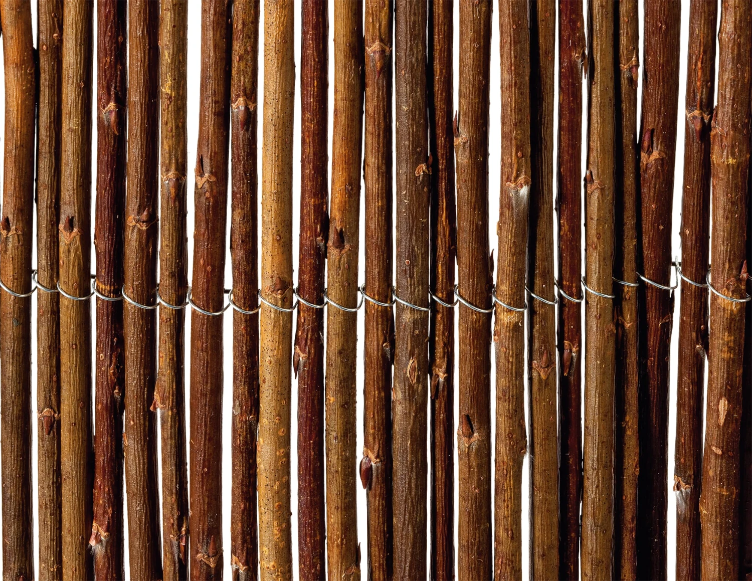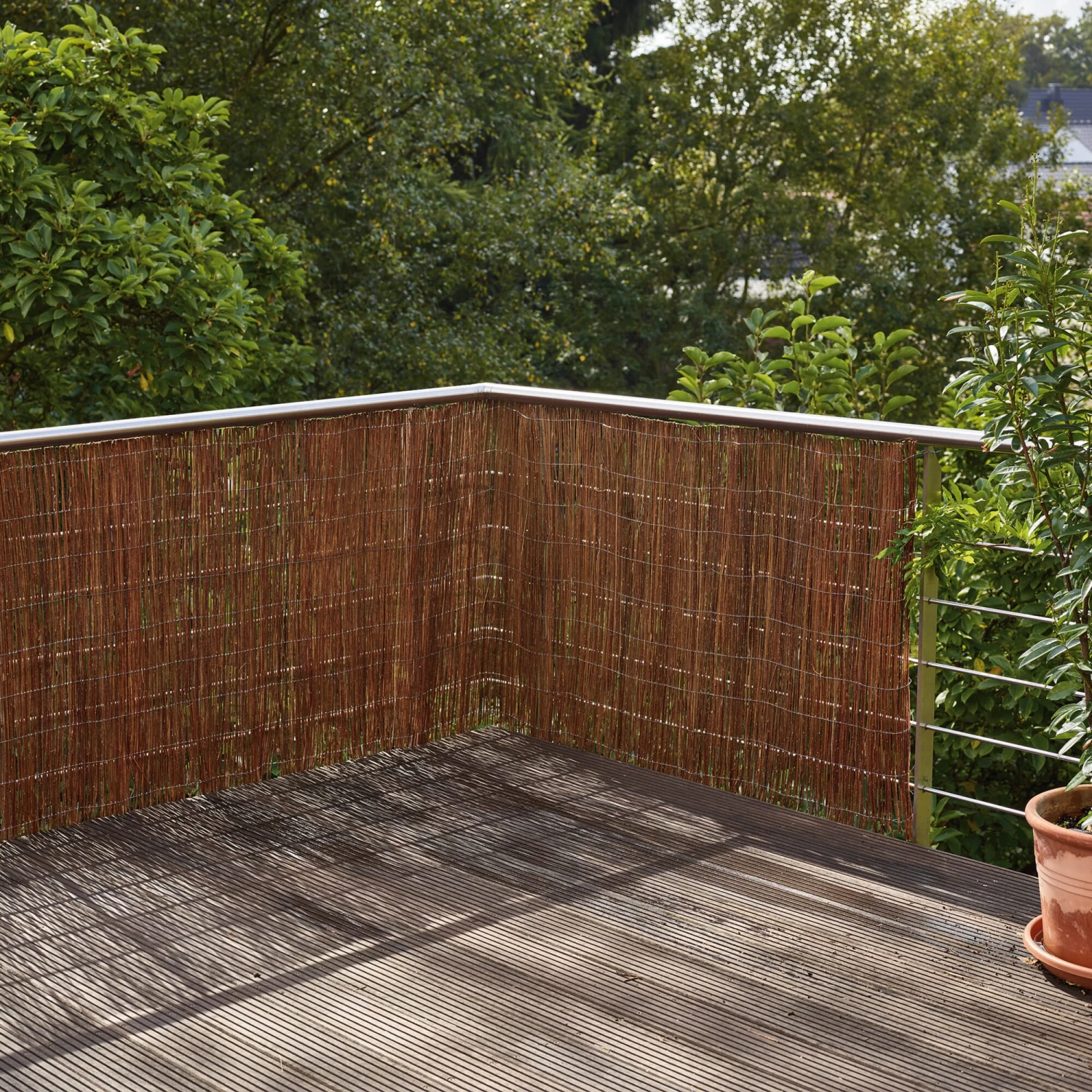An offenen Balkonbrüstungen dient diese Verkleidung aus dunklen Weidenstecken als natürlich anmutende, schmückende Sichtblende und Windschutz. Im Vergleich zu vielen anderen Sichtschutzmatten ist sie sehr sorgfältig verarbeitet – allein die Auswahl geeigneter Stecken annähernd gleichen Durchmessers bedeutet einigen Aufwand. Diese werden mit rostfreiem Draht zu flexiblen Matten gebunden, die sich jeder Geländerform anpassen und mit der Gartenschere auf die jeweils passenden Maße zurechtgeschnitten werden können. Das naturbelassene Material trotzt Wind und Wetter. Für den Fall, dass Sie gegen das holztypische Verwittern keine Einwände hegen, können Sie mit jahrelangen Standzeiten rechnen. Wir bieten die Matten in zwei Varianten an; die höhere eignet sich auch als seitlicher Sichtschutz auf Balkon und Terrasse.