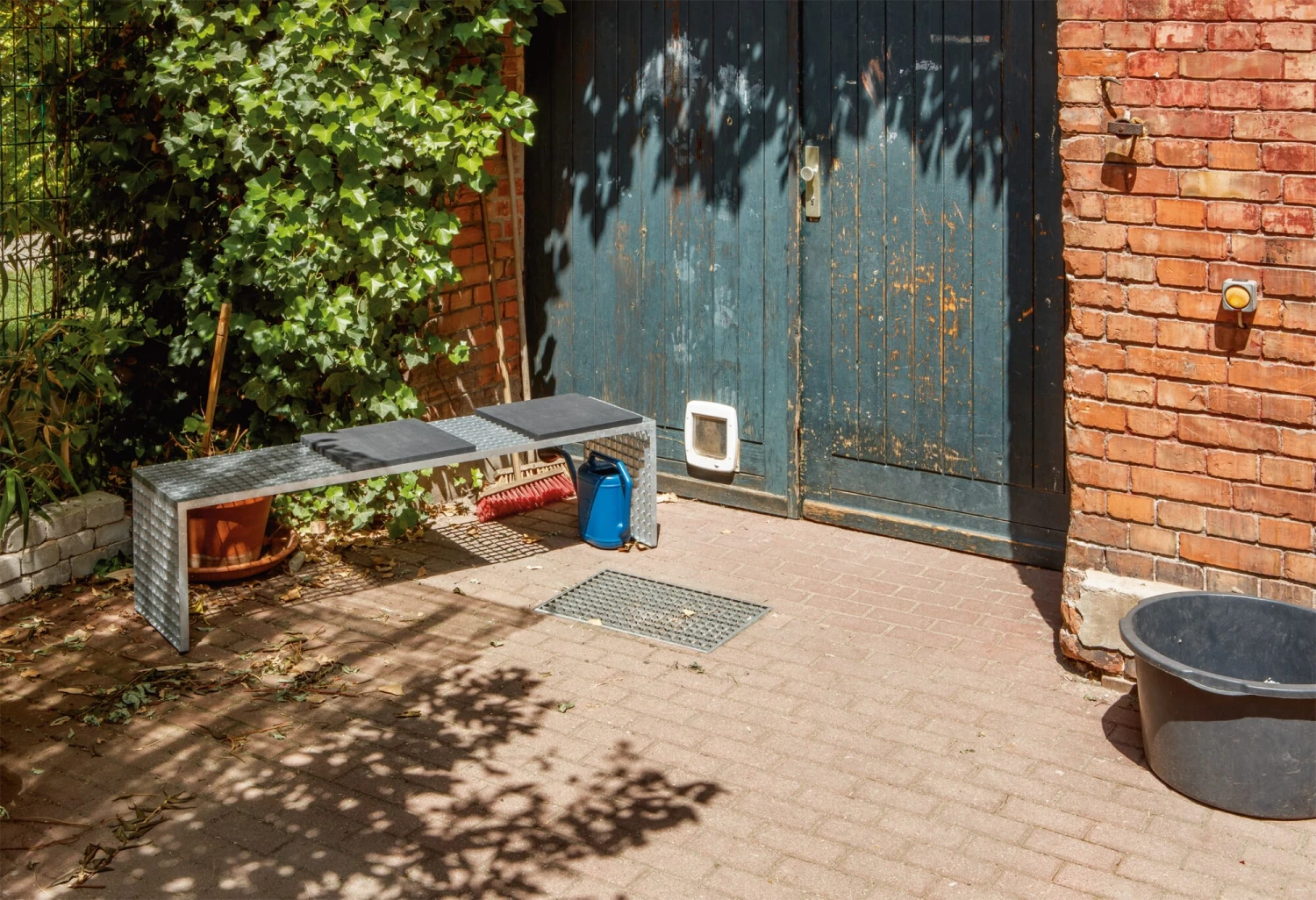 Mit Ecken und Kanten und in unverwüstlicher Industriequalität: universell einsetzbare Bank – als Möblierung von Garten und Terrasse, zur Ergänzung einer vorhandenen Sitzgruppe, als architektonisch wirksames Element vor der Haustür oder bei der Bepflanzung von Terrasse oder Balkon, wobei ein separat einsetzbarer Fachboden für ergänzenden Stauraum sorgen kann. Wünscht man dazu noch eine Rückenlehne, so kann man diese mithilfe der Halterung und einem Fachboden ganz leicht ergänzen. Die Rückenlehne kann an jeder SKWER Bank eingesteckt werden.