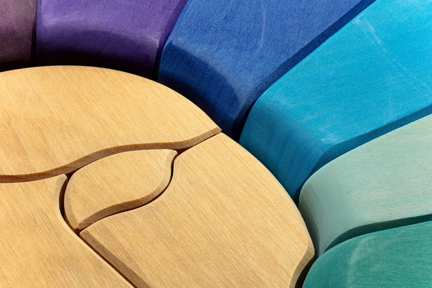 Spielzeug, das mit der Entwicklung Ihres Kindes Schritt hält und ihm in jeder Phase ein freies Spielen ermöglicht. Spielzeug in reduzierter, bedeutungsoffener Gestaltung, die der kindlichen Phantasie und Kreativität alle Freiheit lässt und bunte Welten in Regenbogenfarben eröffnet. Spielzeug aus dem Naturprodukt Holz, das mit seiner einzigartigen Haptik und individuellen Maserung zum Tasten, Greifen und Spielen animiert.