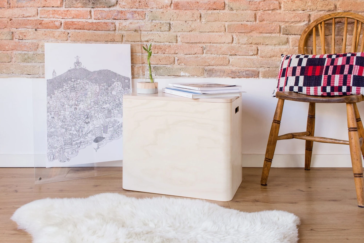 Schöne Kiste, fein gearbeitet aus finnischem Schichtholz. Zwei separat einschiebbare Fachteiler sorgen für individuelle Unterteilung des Innenlebens. ECOSMOL ist Staumöbel für vielerlei Zwecke: im Büro als Archivbox für Zeitschriften etc., im Haushalt als Aufbewahrungsmöbel für Utensilien oder als Abfallsammler und -sortierer. Durch die stabile Konstruktion ist ECOSMOL auch als Hocker beispielsweise im Flur nutzbar oder als Beistelltisch neben Bett und Sofa.
