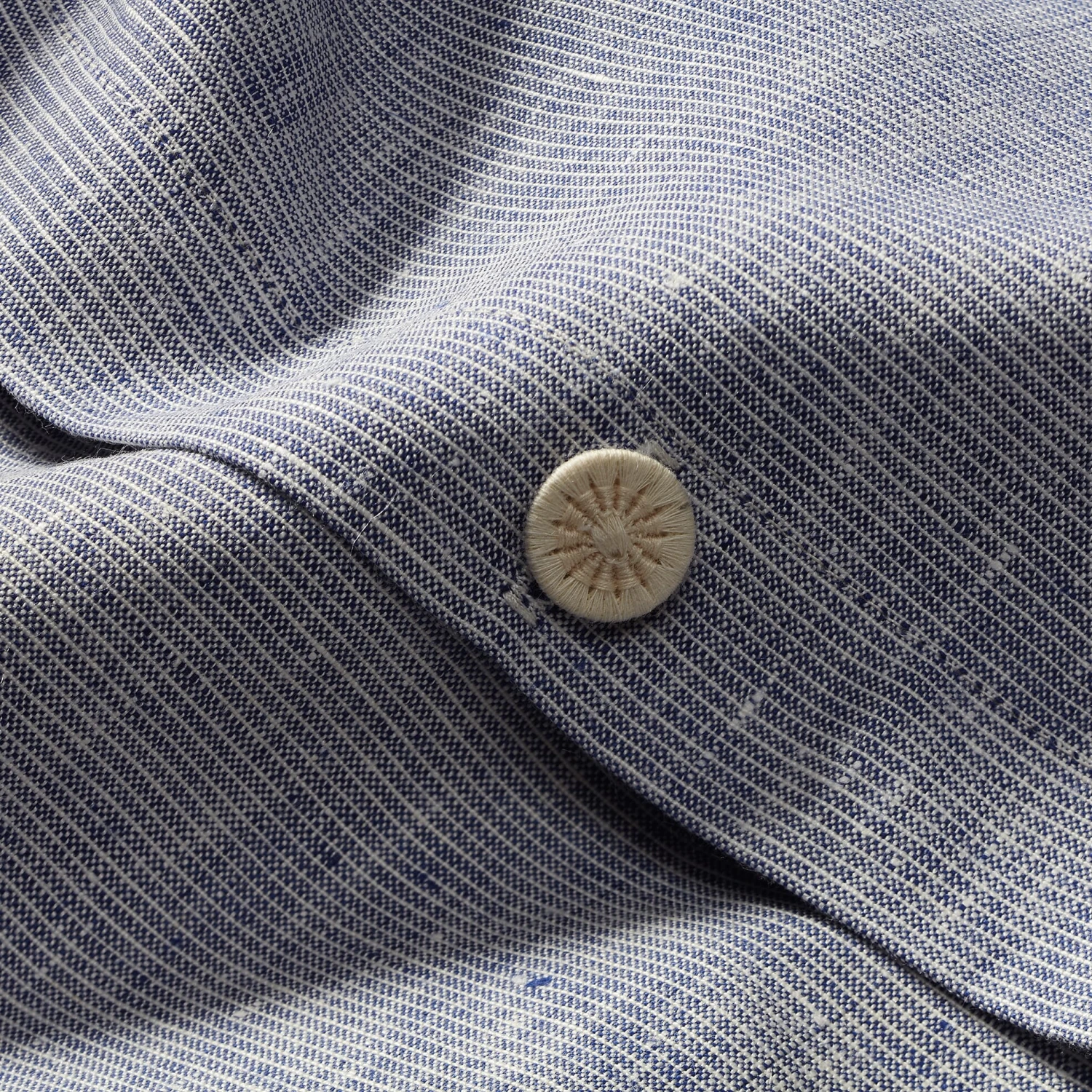 Blickt man von Weitem auf die Bettwäsche aus reinem Leinen, wirkt sie zunächst wie meliert. Erst bei näherem Hinsehen sind die feinen Streifen zu erkennen, die hier quer verlaufen und nicht wie häufig in Längsrichtung. Bei der hellen (weiß-blauen) Wäsche sind die Streifen blau, der Fond ist weiß. Bei den rot- bzw. blau-weißen Bezügen verlaufen weiße Streifen auf farbigem Fond. Die Lausitzer Weberei Hoffmann verarbeitet ausschließlich Leinen aus europäischem Langfaserflachs. Das hier verwendete Garn ist mit einer Stärke von Nm 26 recht fein und ergibt ein ebenso feines wie leichtes Gewebe mit einem weichen, leicht körnigen Griff.