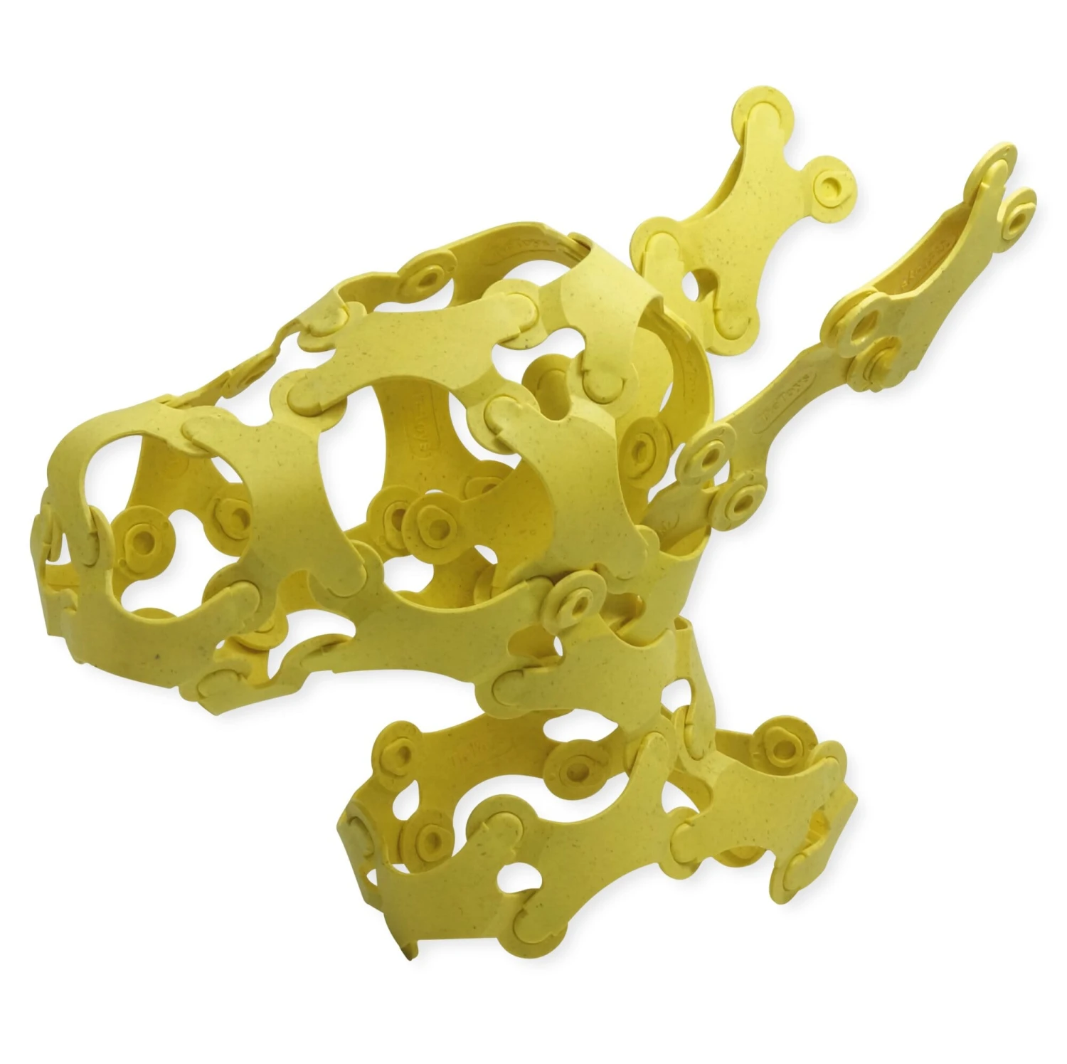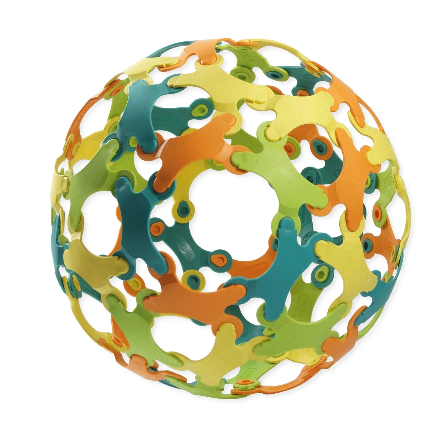 Erstaunlich, was sich mit den kleinen, robusten, immer baugleichen Binabo-Chips alles konstruieren lässt: von Bällen und Wurfscheiben über Türme und Kegel bis hin zu komplizierteren Figuren in den verschiedensten Formen und Größen. Die Konstrukte sind dabei so stabil und zudem sehr leicht, dass man mit ihnen wirklich spielen und fast alles anstellen kann. Die Bälle zum Beispiel eignen sich zum Jonglieren ebenso gut wie zum Fußball- oder Volleyballspielen. So wird aus dem Konstruktionsspiel schnell ein Bewegungsspiel.