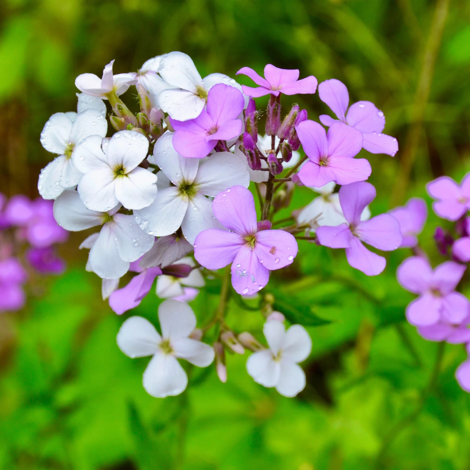 Mehrjährige Pflanze mit weißen, rosafarbenen oder violetten Blüten, die ihren lieblichen, veilchenartigen Duft erst gegen Abend verströmen. Höhe 70–80 cm.