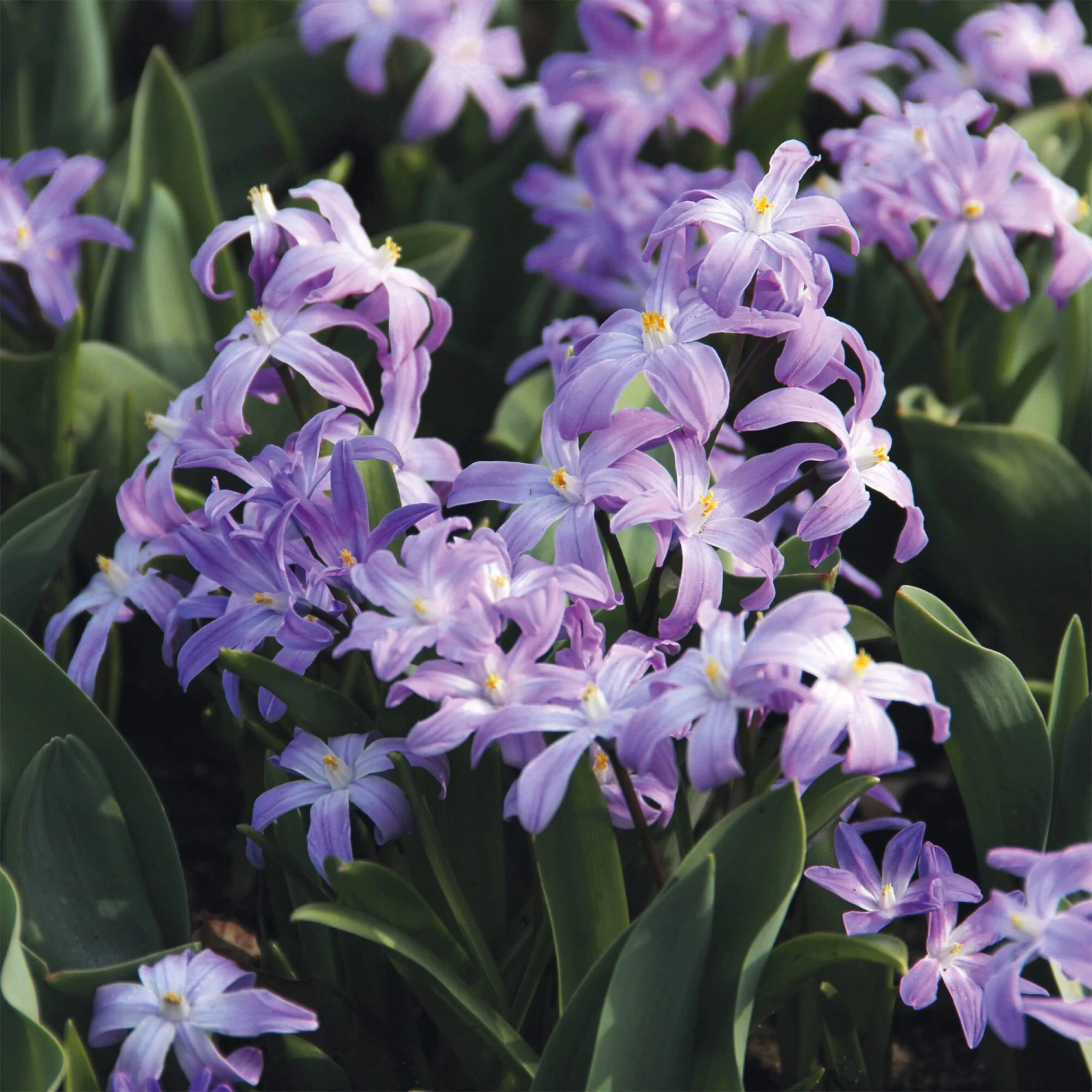 Teppiche aus Schneeglanz wirken wunderbar als großflächige Unterpflanzung von frühjahrsblühenden Sträuchern, etwa Forsythien. Im Staudenbeet oder als Unterpflanzung höherer Zwiebelblüher sorgen sie ebenfalls für eine frühe üppige Blütenpracht. Durch Brutzwiebeln und Selbstaussaat verwildert die Pflanze schnell, ohne dabei lästig zu werden. Diese ungewöhnliche Sorte zeigt fliederfarbene Blütensterne im März und April und wird 15 cm hoch. Sortierung 5/+.
