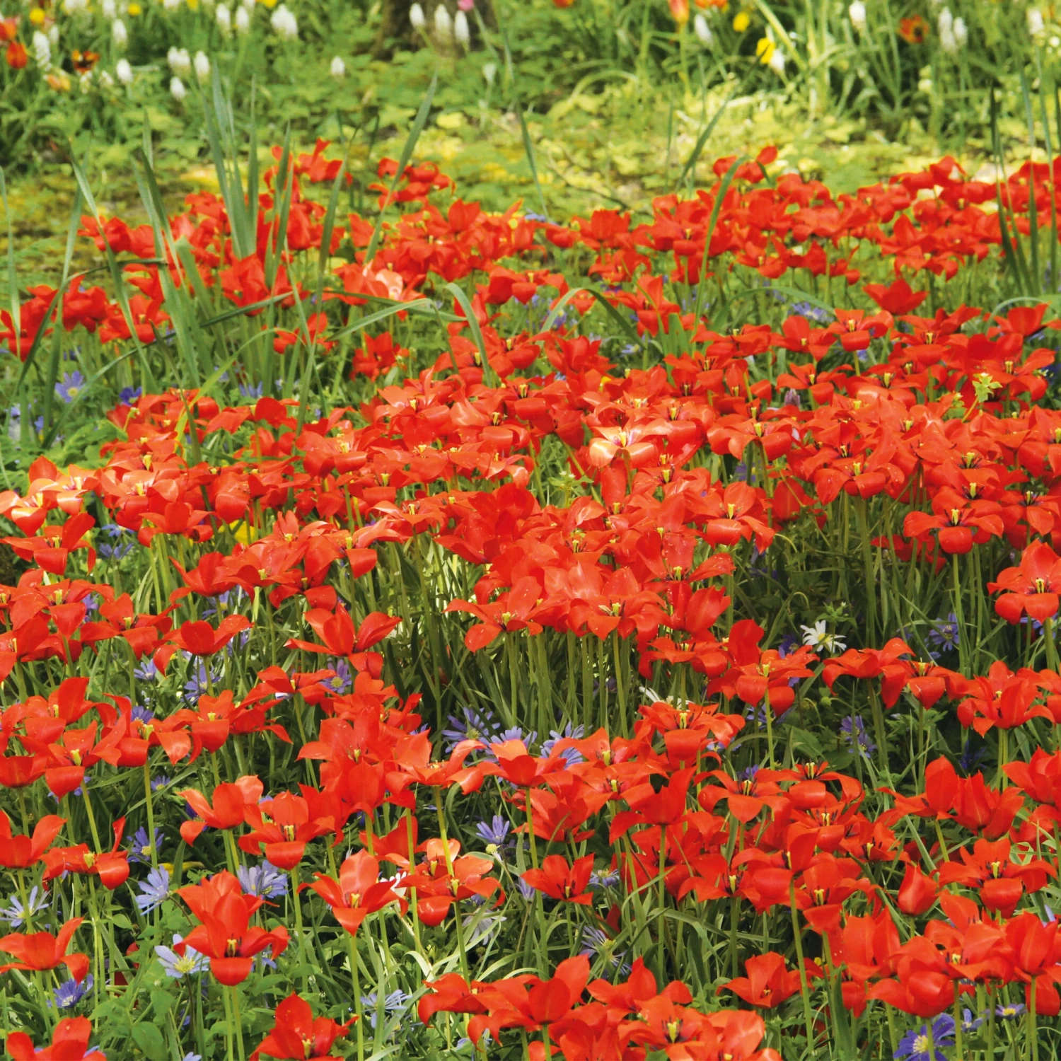 Diese zierliche kleine Wildtulpe wirkt mit ihren schmalen, sattgrünen, rot gesäumten Blättern sehr edel. Von April bis Mai entfalten sich die scharlachroten Blüten und zeigen voll erblüht einen schwarzen Fleck in der Blütenmitte. Die Pflanzen werden 15–20 cm hoch und verwildern gut auf trockenen Wiesen und Beeten oder im Steingarten. Sortierung 4/+.