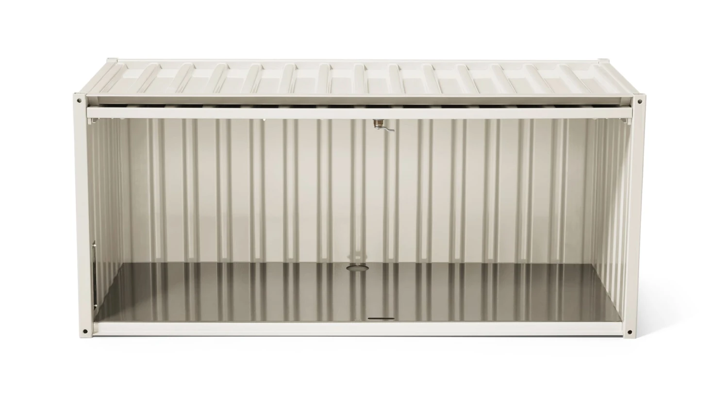 Der Klassiker: Der CONTAINER DS in der Proportion eines Seecontainers ist quasi der Urtyp der Serie CONTAINER DS. Er dient als Schrank im Wohnraum für Porzellan und die Utensilien für den gedeckten Tisch, im Büro für die Unterbringung von Aktenordnern im genormten Format oder für Papier und Büroutensilien. Als Kommodenmöbel für Wäsche und als Möbelstück in Flur und Garderobe. Kombinierbar ist er in seiner rechteckigen Grundform mit einer Vielzahl von ergänzenden Zubehören. Verschiedene Füße und Rollen oder die beiden Gerüstgestelle dienen dabei als Basis. Das Regalelement TARA besitzt die Außenkontur des Containers und lässt sich mit diesem in der Höhe über im Lieferumfang befindliche Verbinder stapeln. Das Garderobengestell ergänzt den Container zur funktionalen Garderobe. Der Container dieses Formats ist in eingeschränkter Farbauswahl mit einem Schloss ausgestattet lieferbar. Mit einer separat lieferbaren Konsole ist er an der Wand zu montieren.