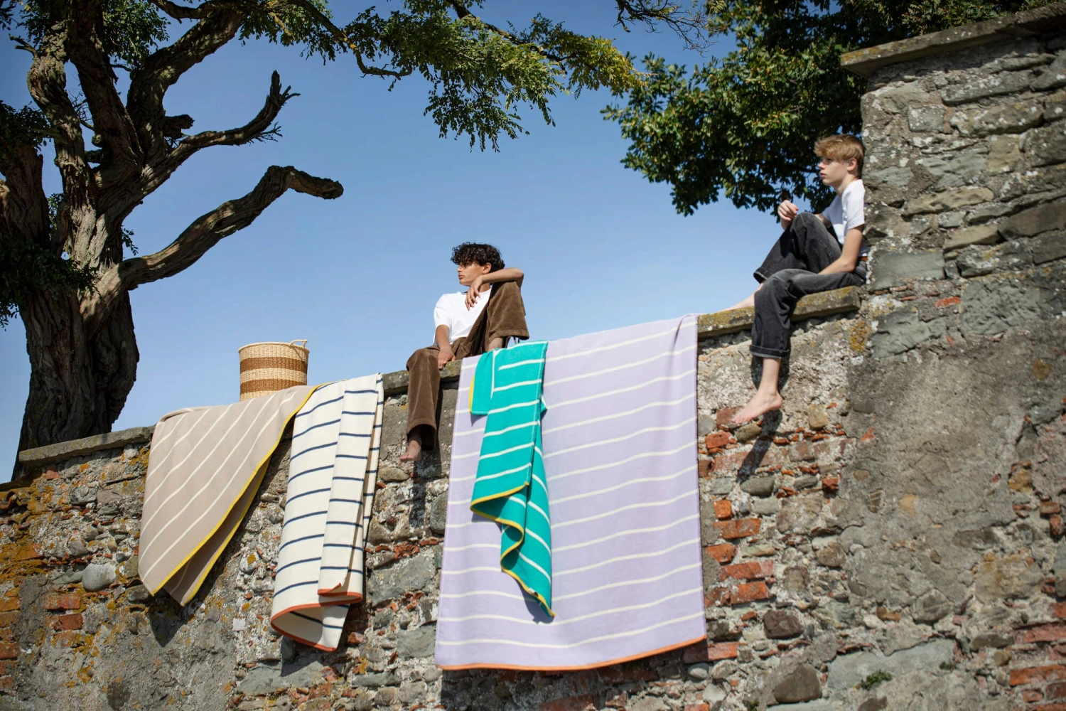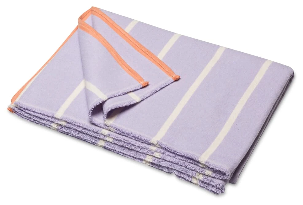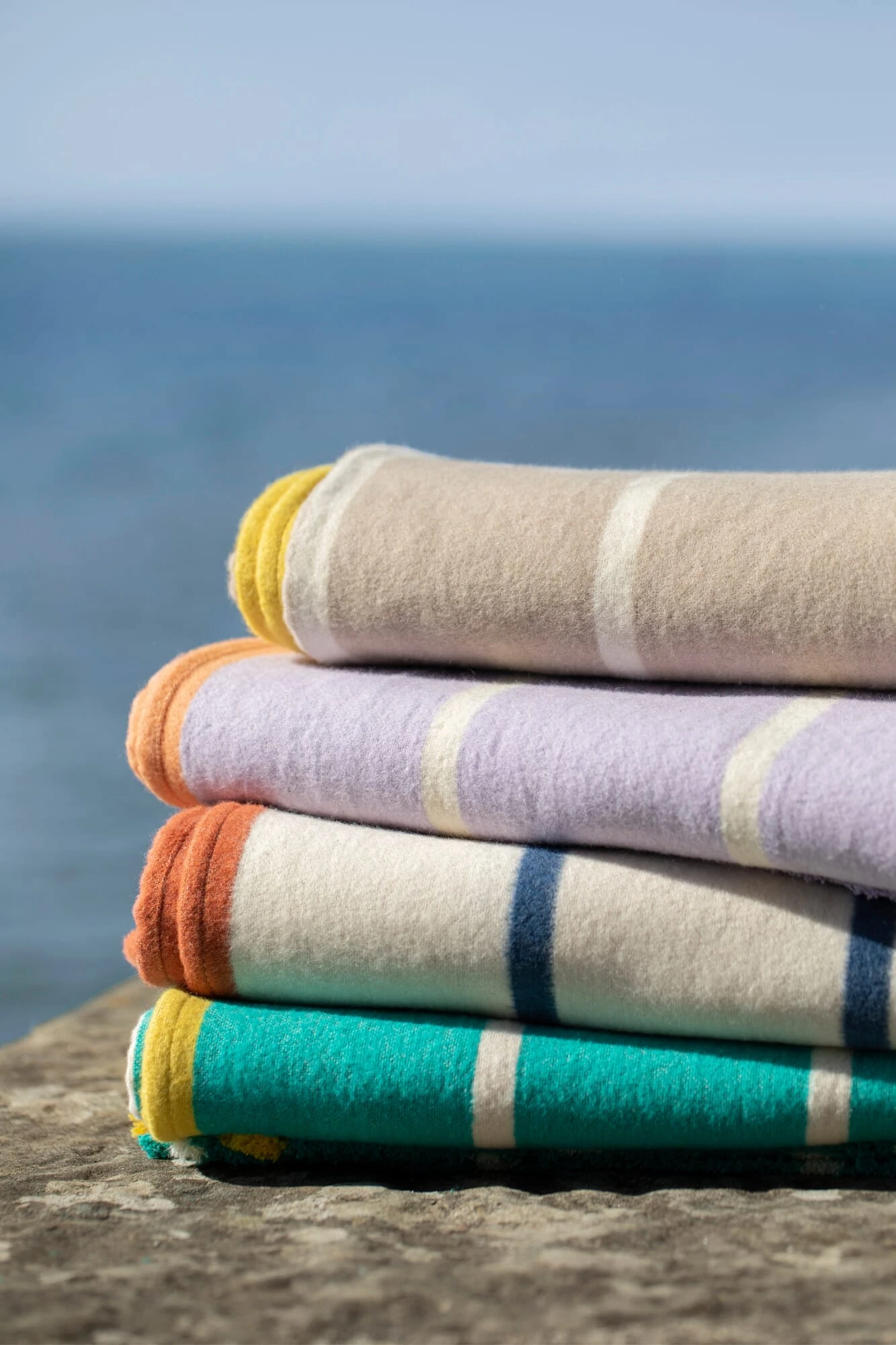 Leichte Decke aus einem Baumwollflanellgewebe für kühle Sommerabende am Wasser, im Garten oder auf Terrasse. Gemütlich auch im Einsatz auf Sofa oder Sessel. Eine dünn gewebte Decke, die dennoch wärmend ist. Der hohe Baumwollanteil sorgt dabei für gute Atmungsaktivität. Die klassischen Streifen auf sommerlichen Farben werden durch einen farblich abgesetzten Saum eingefasst, was der Decke eine spezielle Optik verleiht.