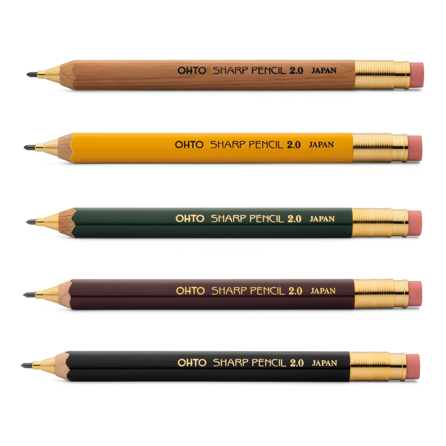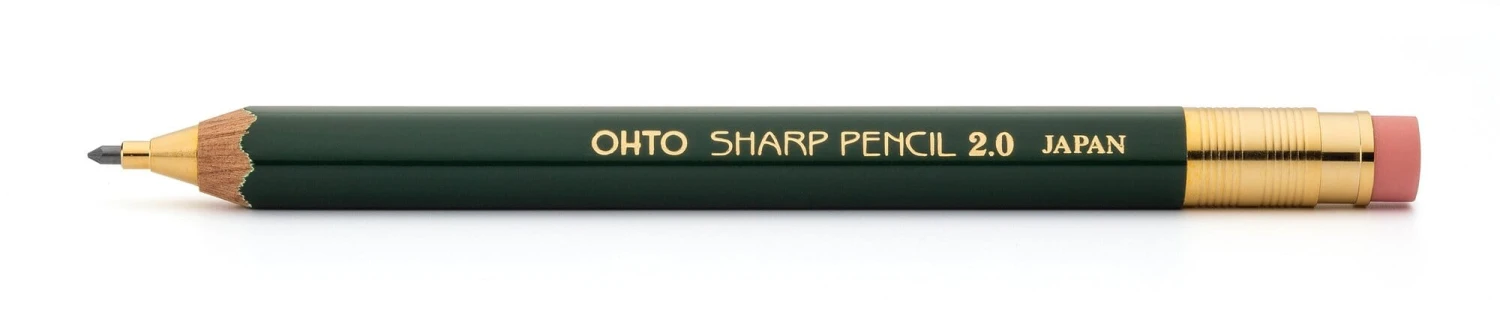 Von Ohto in Tokio, einem der führenden Hersteller von Feinminenstiften, kommt dieser kleine Druckbleistift mit 2-mm-Mine und rückseitigem Radierer. Anders als die europäischen metallenen Kollegen ist der Korpus aus Zedernholz gemacht, sodass der Druckbleistift zum einen leichter ist und zum anderen haptisch an die gängigen Bleistifte erinnert. Mit 13,5 cm Länge eignet er sich zudem für die Stiftschlaufe kleinerer Kalender oder Notizbücher.