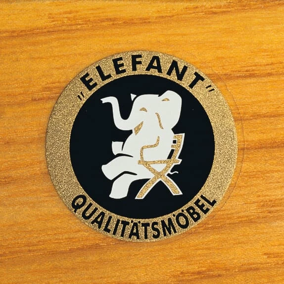 Diese Gartenmöbel finden ihren Einsatz normalerweise nur in Wirtschaften und Restaurants mit Außenbewirtschaftung: Hier sind sie aufgrund ihrer robusten, durch das Logo signalisierten „elefantensicheren“ Verarbeitung eine einmalige Investition – das Gestühl übersteht Jahrzehnte. Für uns wird es mit witterungsbeständigem Robinienholz beplankt. Es wird zunächst mit einer pigmentierten Grundierung versehen, die unter anderem den UV-Schutz verbessert; dann erfolgt ein Zwischenschliff. Abschließend wird das Holz geölt, was es eine Zeit lang vor dem Vergrauen schützt. Wer das Vergrauen auch danach nicht hinnehmen möchte, kann ihm mit Holzpflegeprodukten entgegenwirken.