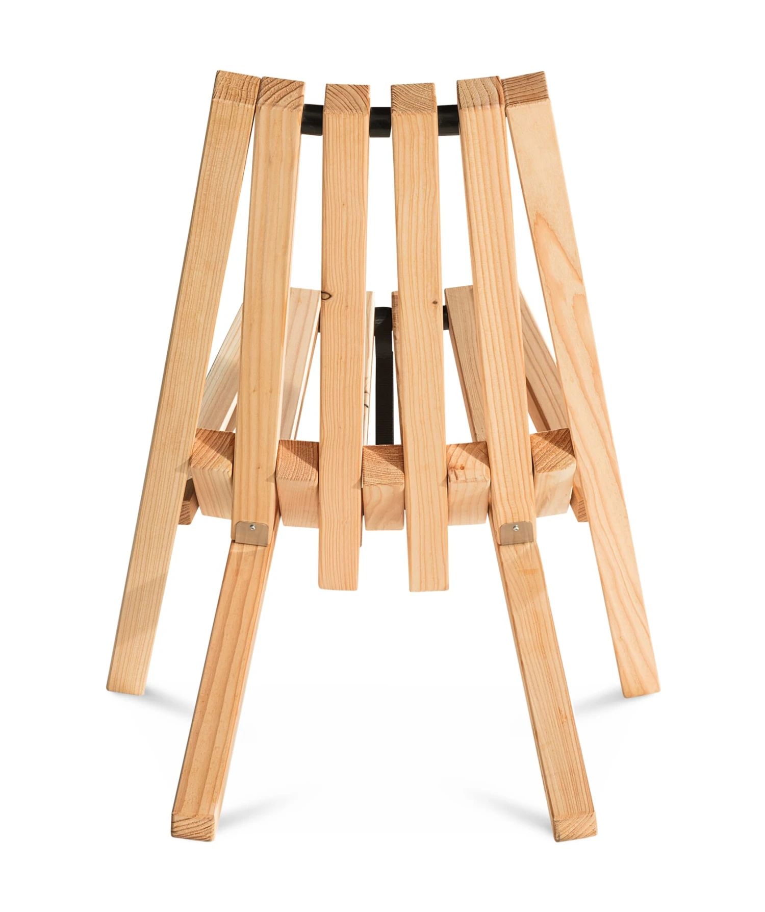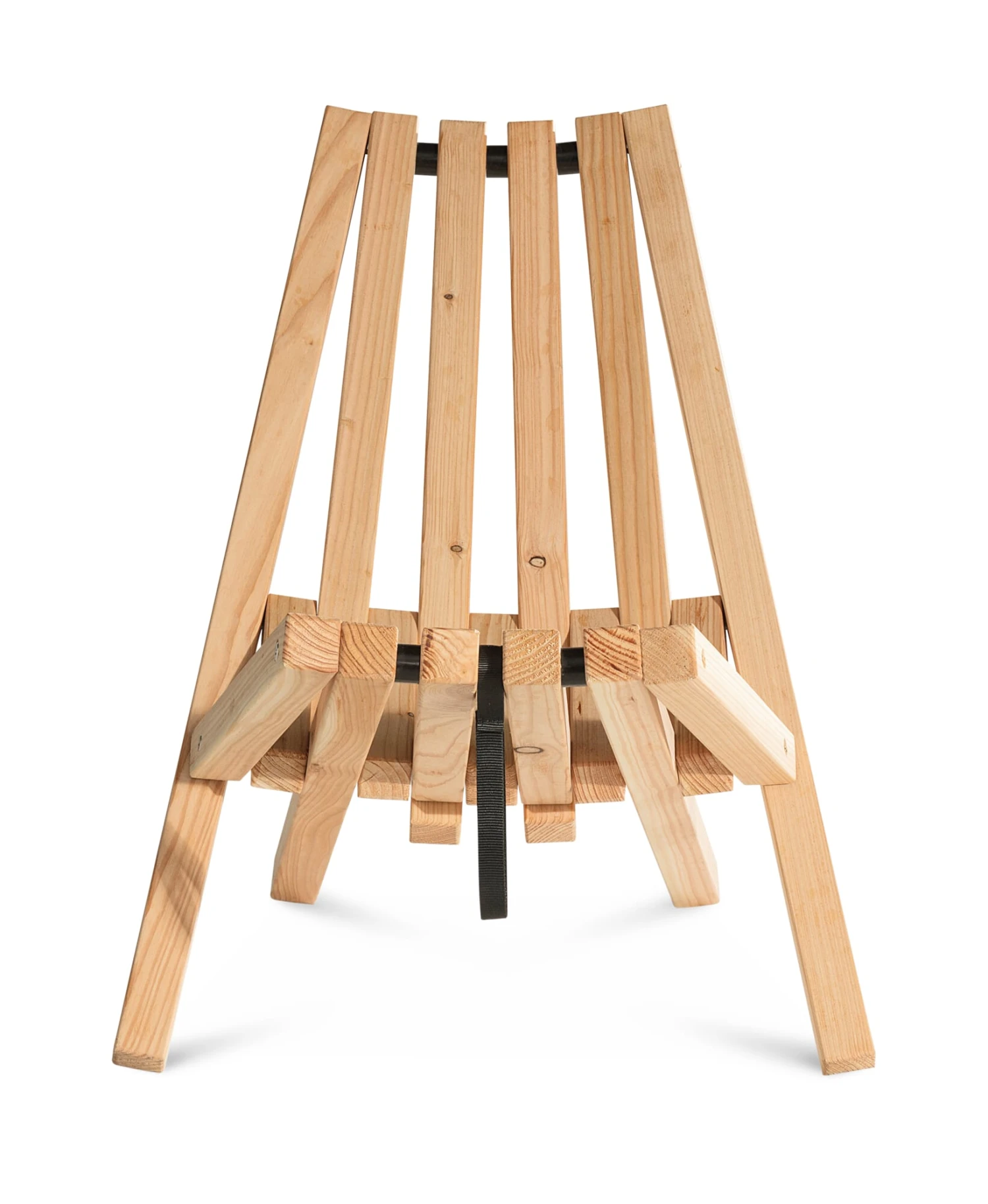 Starke, archaische und unverwüstliche Konstruktion. Der faltbare und damit wenig Stauraum einnehmende FIELDCHAIR bietet sich als komfortabler wie robuster Ruhesessel an. Geeignet als ergänzende Sitzgelegenheit im Wohnraum oder als ganzjährig wetterfestes Möbel im Freien.
