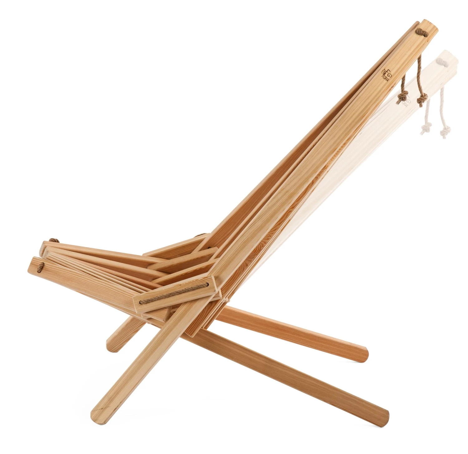 Man nehme: eine Anzahl massiver Lärchenholzleisten, gebeizt oder auch unbehandelt, dazu einige starke Seile aus Hanf. Und füge daraus zusammen: diese schlichten Gartenmöbel. Die Möbel entstammen einer finnisch-estnischen Koproduktion, deren Ideengeber mit einem Holzlieferanten am anderen Ostsee-Ufer zusammenarbeiten. Verwendet werden ausschließlich nordische Hölzer, die, wenn sie nicht ohnehin aus zertifiziertem Bestand stammen, zumindest in regional überwachten Anbaugebieten geschlagen werden. Zur Lärche ist zu sagen, dass ihr Holz sehr dauerhaft und wenig nässeempfindlich ist. Es wird im Laufe der Zeit allerdings das typische Vergrauen zeigen, das Sie mit dem allgelegentlichen Auftragen eines geeigneten Pflegemittels aber mindern können. Unser Lieferant empfiehlt, die Lärchenholzmöbel regelmäßig mit einem feuchten Lappen oder einer weichen Bürste zu reinigen und über den Winter einzuräumen.