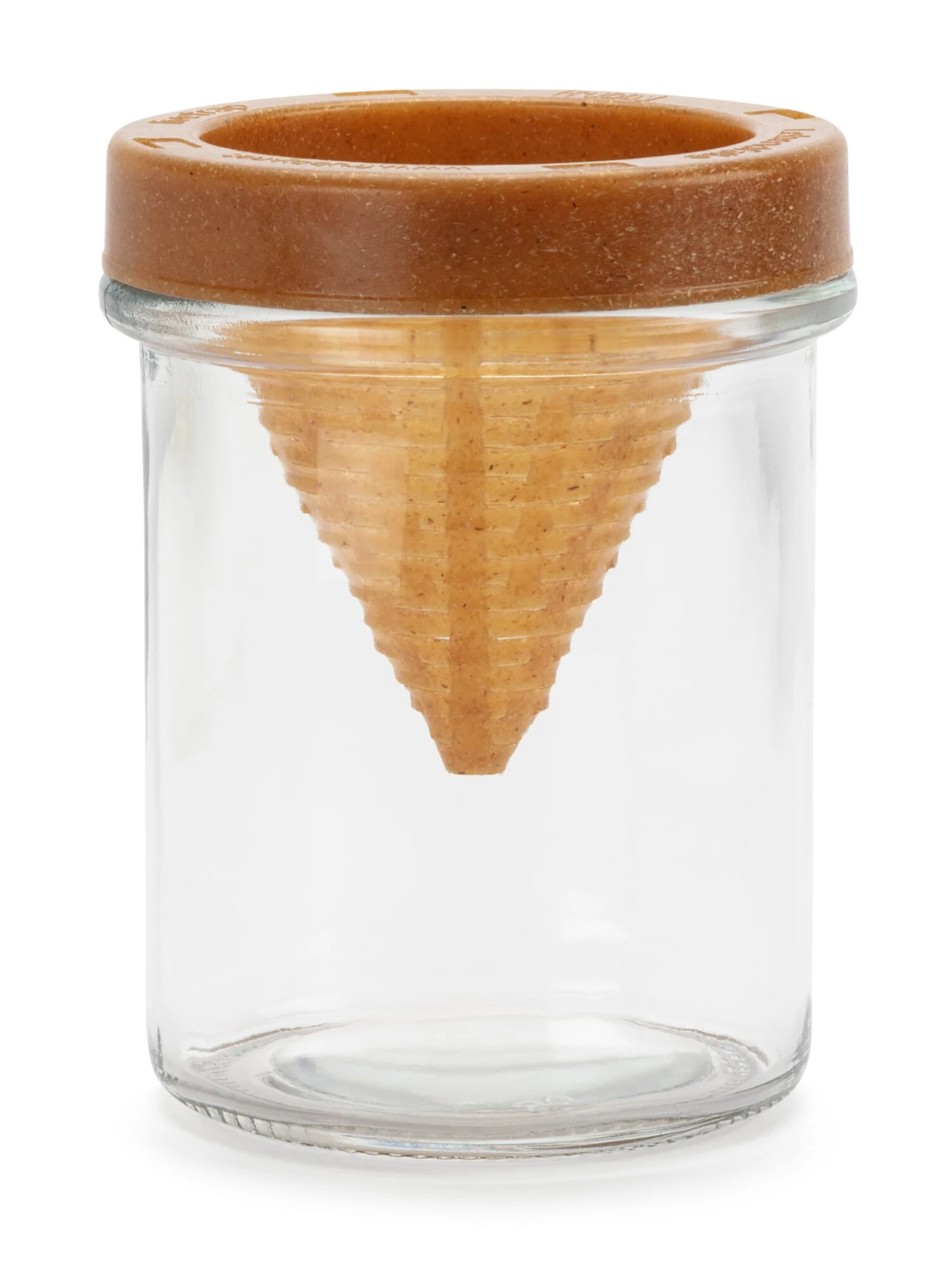 Unsere Fruchtfliegen-Lebendfalle nimmt nicht nur Rücksicht auf Drosophila melanogaster. Der Fangbehälter besteht aus recyceltem Altglas, kann also dauerhaft verwendet werden. Für den Trichter wird ein Bio-Werkstoff verwendet, der zu 92% aus Lignin besteht, einem Bestandteil in Pflanzen, der für die Verholzung verantwortlich ist und dadurch für Stabilität sorgt. Bei der Papierherstellung fällt Lignin in größerer Menge an, kann aber hierfür nicht weiter genutzt werden. Durch den Zusatz von Stärke, Zellulose, organischen Additiven, Mineralien sowie natürlichen Wachsen und Fasern wird der Bio-Werkstoff noch stabiler und kann sogar in die Spülmaschine gegeben werden. Die Verpackung ist aus FSC®-zertifiziertem Graskarton, einer Mischung aus Gräsern und Recyclingpapier. Die Fruchtfliegenfalle wird komplett in Deutschland aus heimischen Rohstoffen produziert, das sichert kurze Produktions- und Transportwege.
