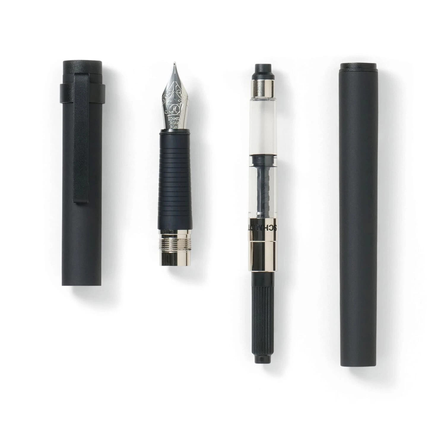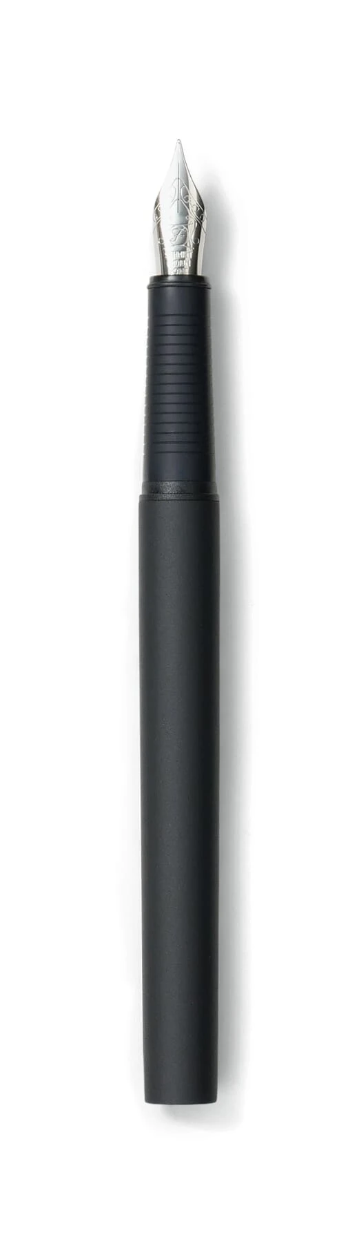 Der Füllfederhalter KAKIMORI, handgefertigt in Japan, besticht durch sein schlankes, minimalistisches Design und sein langlebiges mattschwarzes Aluminiumgehäuse. Mit präziser Edelstahlfeder in feiner oder mittlerer Ausführung füllt er zuverlässig Briefe, Notiz- und Tagebücher. Dieser Füller mit deutscher Feder bietet gleichmäßigen Tintenfluss und wird mit Konverter geliefert. Der qualitativ hochwertige Stift ist perfekt ausbalanciert und liegt angenehm in der Hand. Ein unverzichtbarer Begleiter für alle Gelegenheiten.