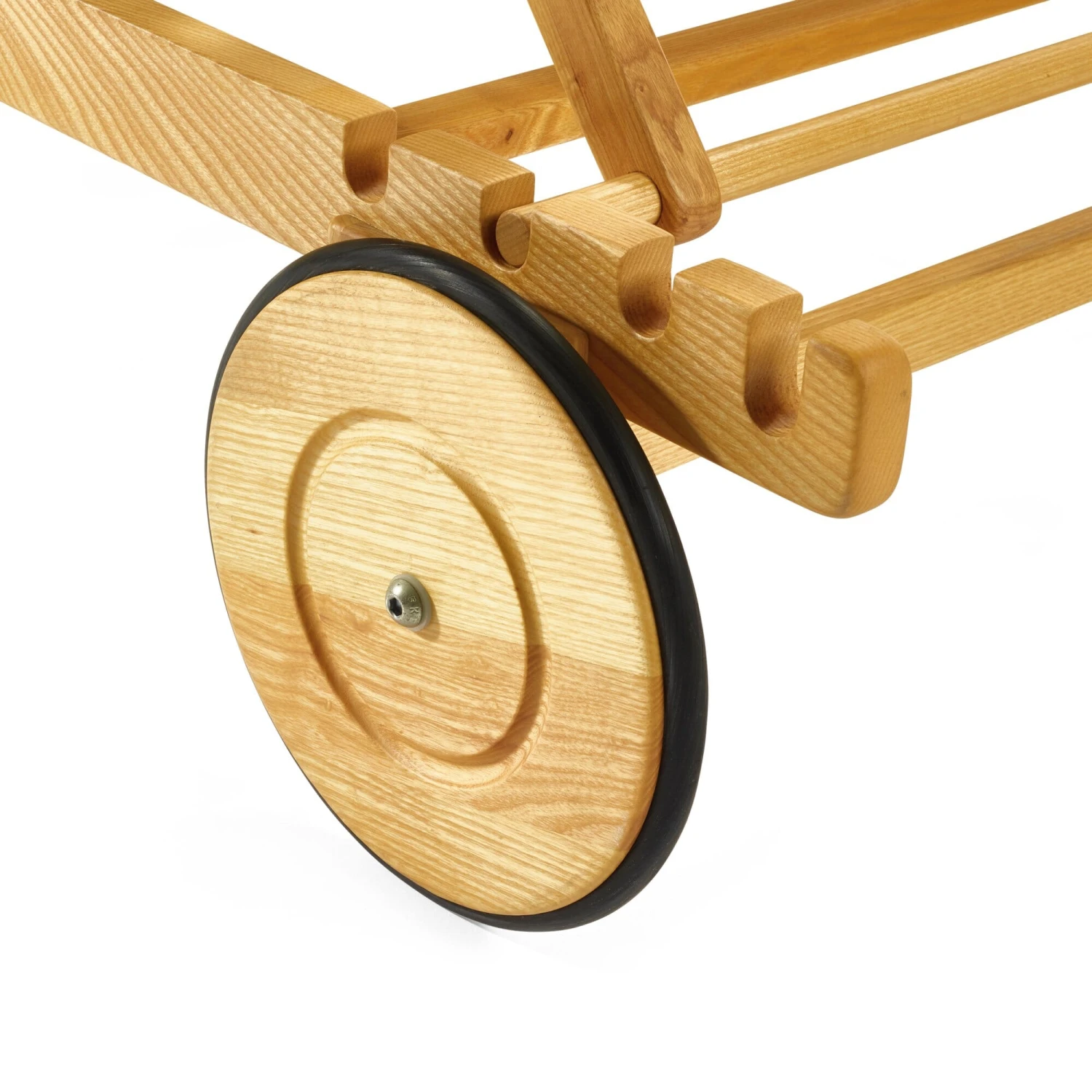 - Mobil: 2 stabile Holzrollen mit Gummibelag