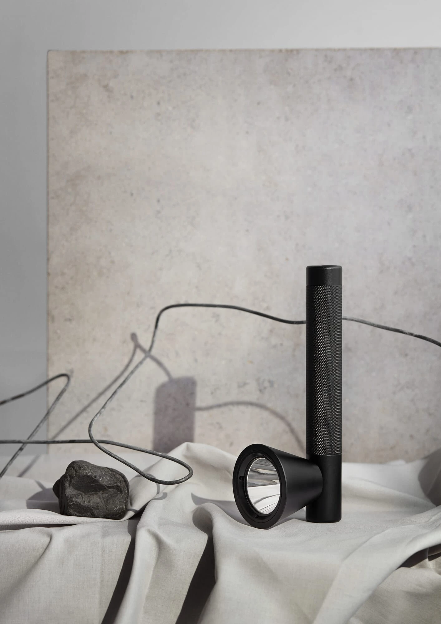 TRACE ist eine ungewöhnliche Handleuchte, denn ihr Griffteil steht 90 Grad abgewinkelt zum Leuchtenkopf. Das erlaubt, dass man sie auch eingeschaltet senkrecht auf Griffteil und Leuchtenkopf abstellen kann. Die gut zu handhabende Leuchte enthält eingebaute LED-Lampen. IP44. Lichtstrom: 100 / 240 / 360 lm, Farbtemperatur: 4.400 K, Lebensdauer: 50.000 h, Nennleistung: 3 W. Der wiederaufladbare Akku wird über ein USB-Kabel mit einer Stromquelle verbunden und dient zudem selbst als Stromquelle zum Aufladen von Mobiltelefon und anderen Geräten. Die Ladezeit beträgt 5 Stunden. Vollständig aufgeladen, liefert die Leuchte je nach gewählter Lichtstärke ca. 4 bis 15 Stunden Licht.