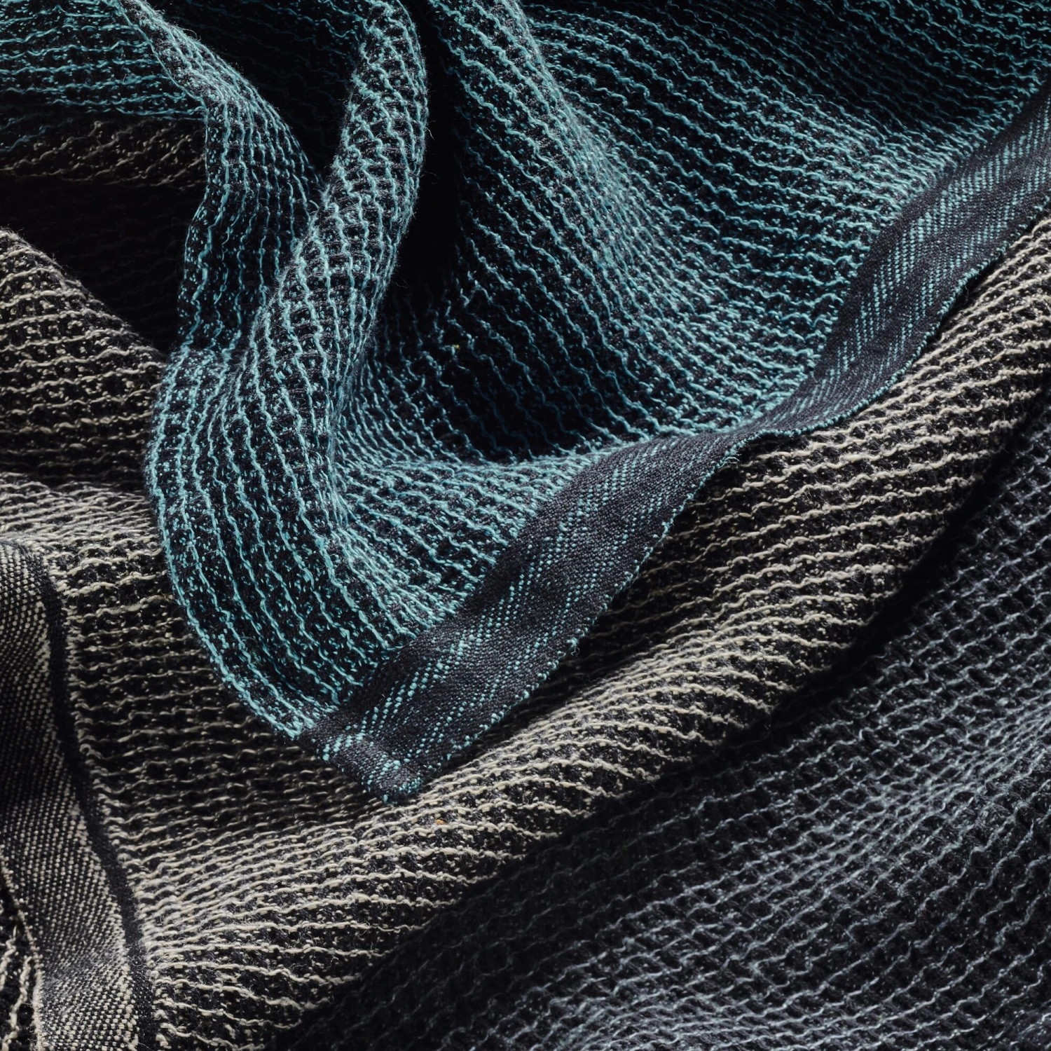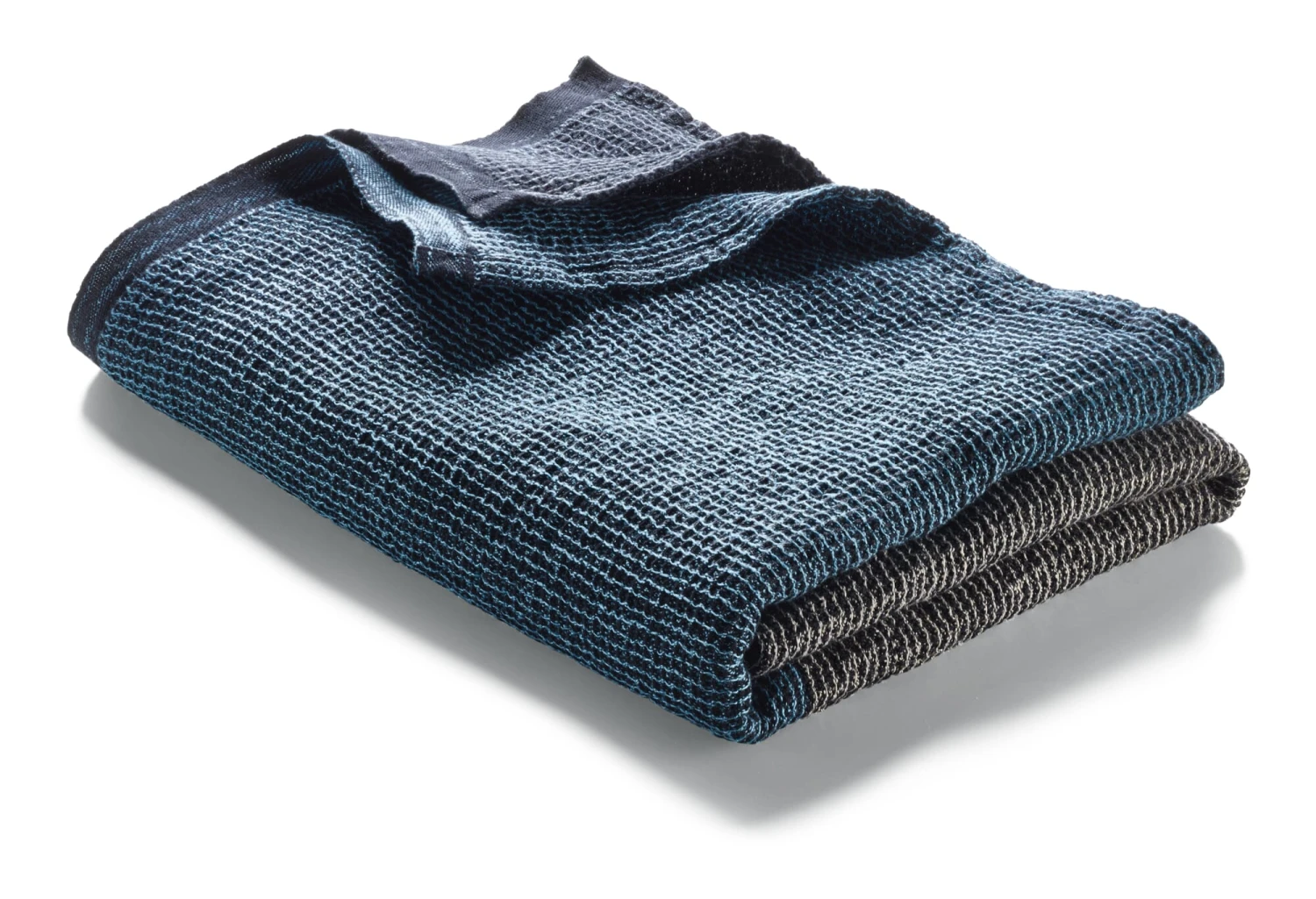 Ein Waffelpiqué, der hier die Eigenschaften von Lyocell, Leinen und Baumwolle in sich vereint, ist insbesondere für Handtücher das perfekte Material: Das Lyocell optimiert die Saugkraft, das robuste Leinengarn sorgt für die Strapazierbarkeit und Langlebigkeit, der Baumwollanteil für den weichen Griff des Gewebes – und die Webart selbst erzeugt einen sanft massierenden Effekt beim Abtrocknen.