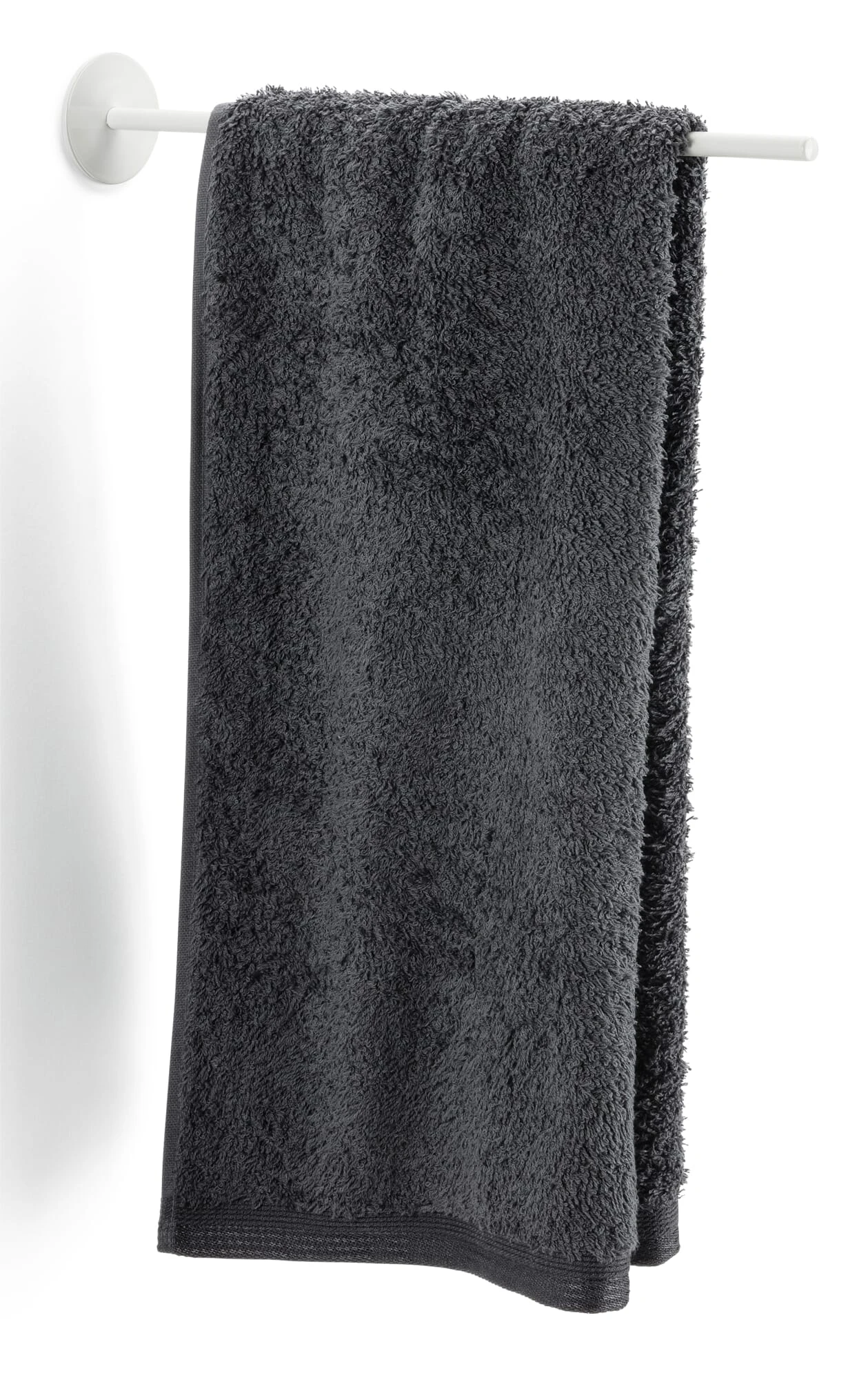 Der Handtuchhalter ist ein weiteres Mitglied der HOOK-Familie. Dieser Handtuchhalter ist minimalistisch und multifunktional im Bad oder in der Küche, für Handtücher oder Kochutensilien einzusetzen. Im Grunde nicht mehr als ein Metallstab. Richtig gut gemacht hält er bis zu 5 kg und wird mit einem ausreichend dimensionierten Dübel – im Lieferumfang enthalten – an der Wand befestigt.