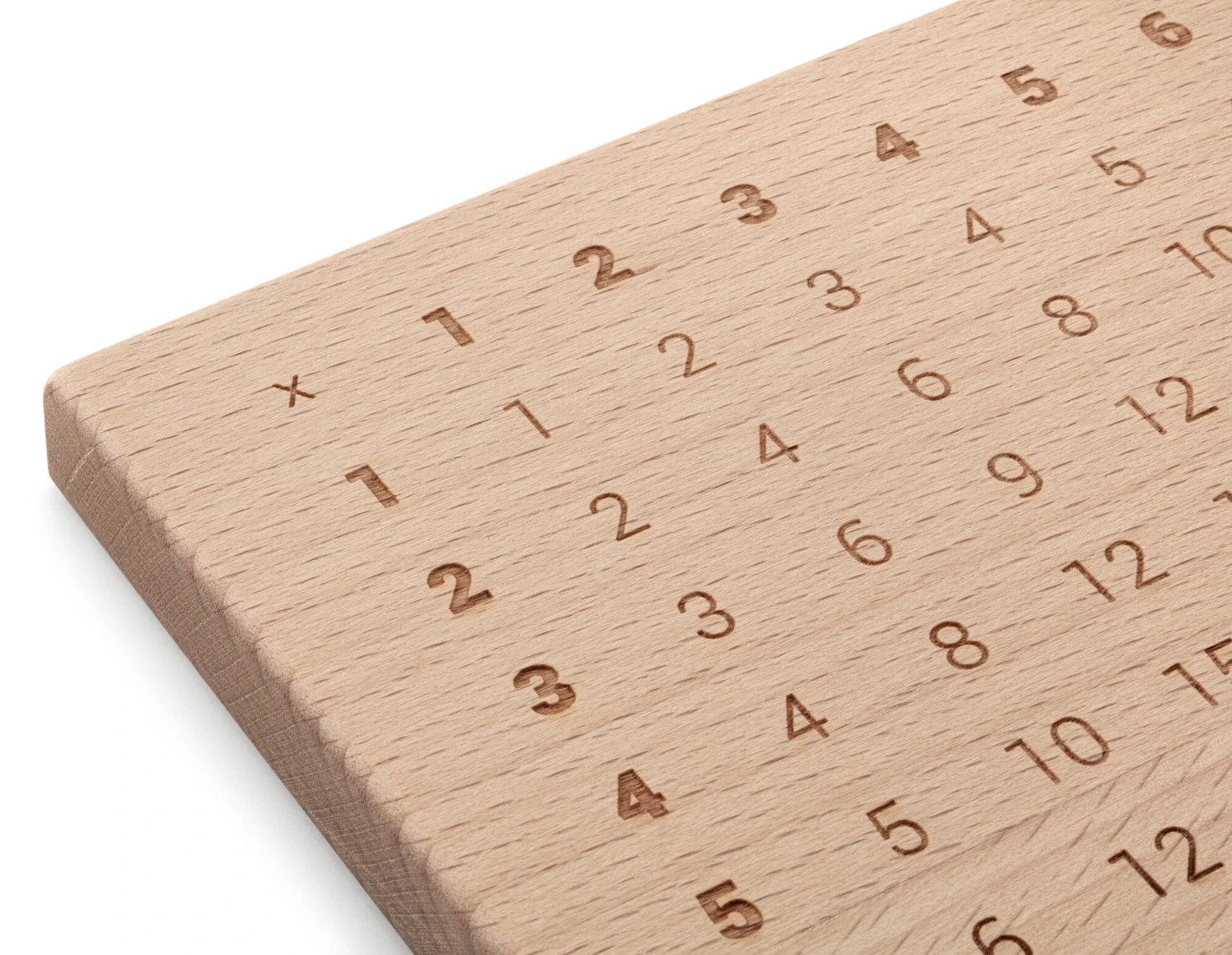 In einer Werkstatt für Menschen mit Behinderung werden diese Brettchen von Hand aus solidem heimischem Buchenholz gefertigt, alle Kanten säuberlich abgerundet und glattgeschliffen. Mit dem Laser eingraviert, sind Matrix und Lineal äußerst präzise abgebildet und auch bei ausgiebigem Gebrauch dauerhaft lesbar. Die Anwendung der Zahlentabellen ist kinderleicht – und perfekt für Mathe-Anfänger, um spielerisch das kleine Einmaleins beziehungsweise Einspluseins zu verinnerlichen. Im Schnittpunkt von Zeile und Spalte der Zahlen 1 bis 10, die multipliziert beziehungsweise addiert werden sollen, findet sich das jeweils richtige Ergebnis. Und natürlich können im Umkehrschluss auch Dividieren beziehungsweise Subtrahieren geübt werden. Zusätzlich können Ihre Sprösslinge mithilfe des seitlich eingravierten Lineals ausmessen, wer den größten Bissen vom Brot nimmt, ob der Löffel über Nacht gewachsen oder die Banane wirklich länger als das Salatblatt ist. Genährter Geist, genährter Körper: Zu guter Letzt findet sich in der oberen rechten Ecke der robusten Brettchen ein sauber ausgefrästes Loch, in dem das Frühstücksei fixiert werden kann.