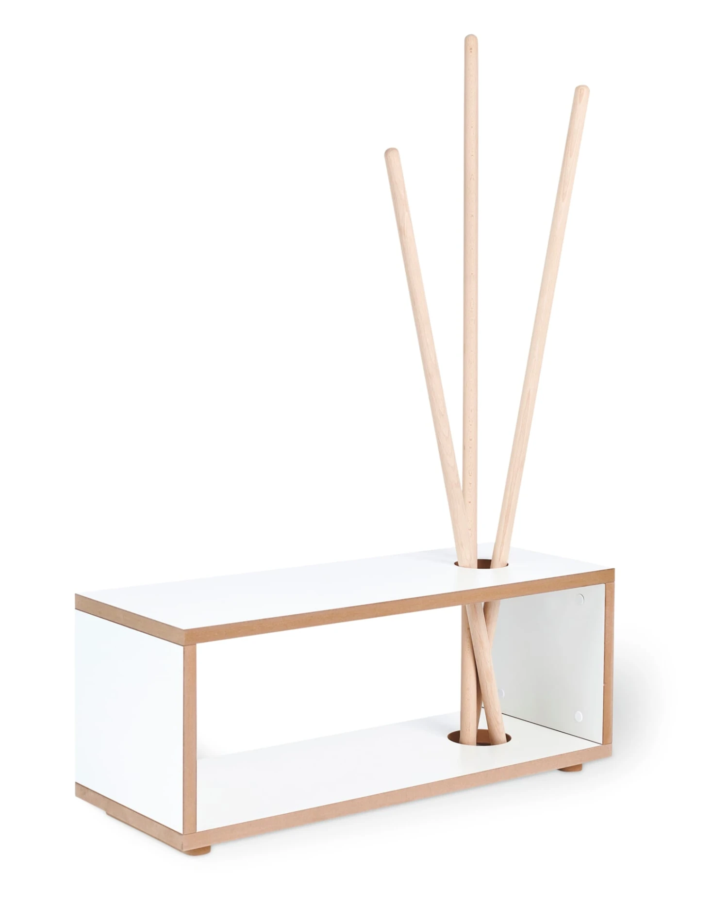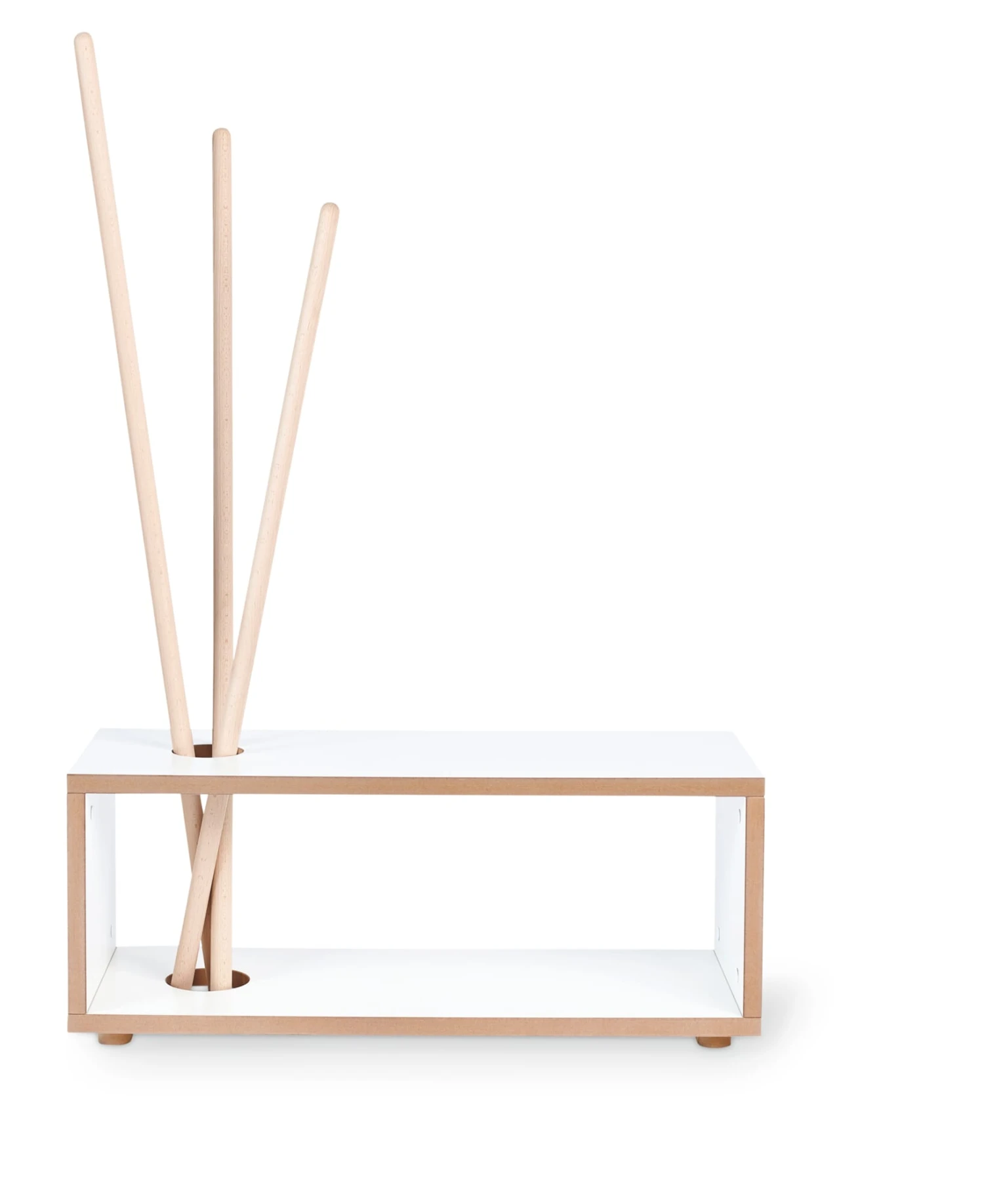 Material: MDF, weiß beschichtet; Stäbe: Buche, natur (Herkunft: Deutschland)