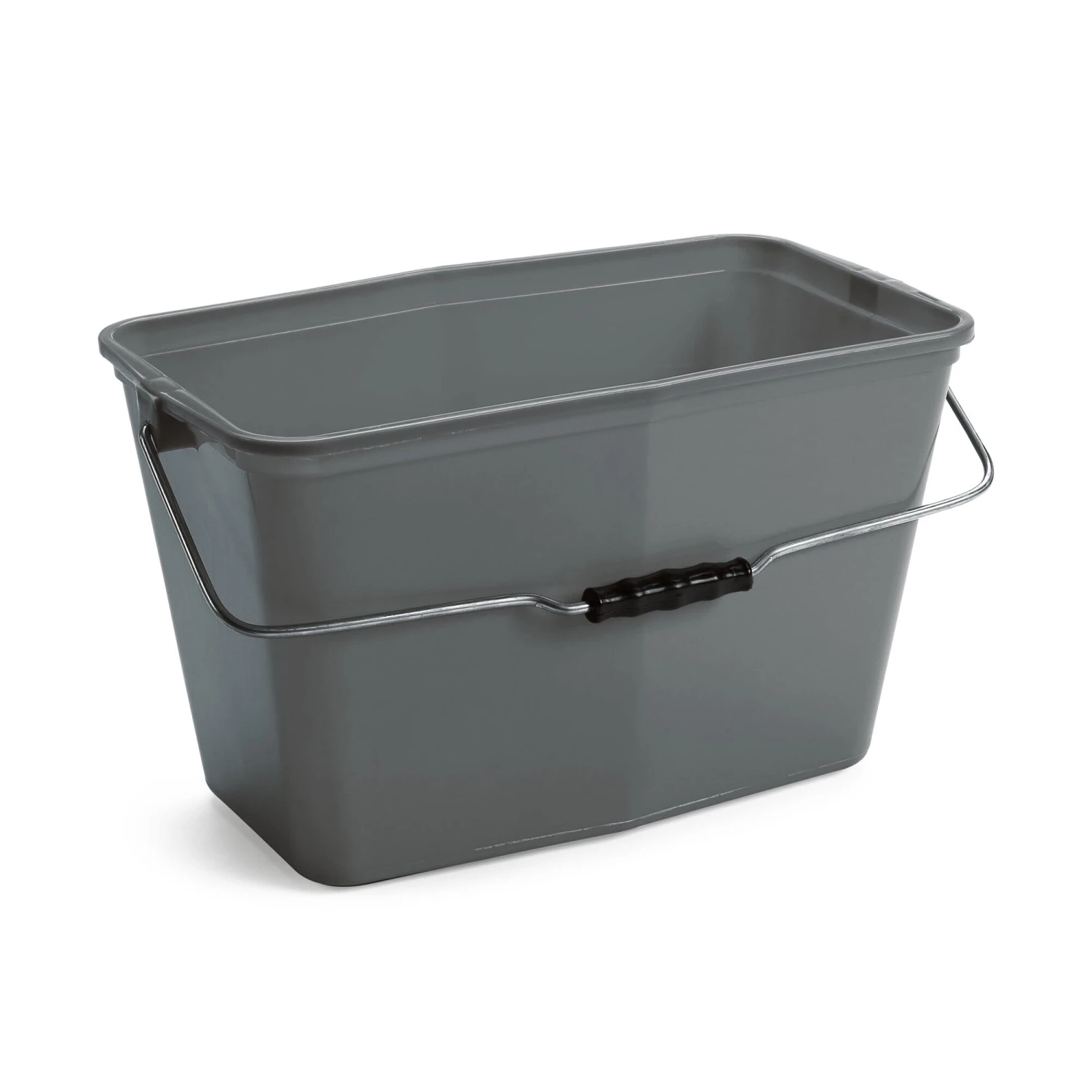 Aus profanem Kunststoff (PE-HD), aber im passenden Format für unseren italienischen Schwammwischer – und das macht ihn zum gesuchten Objekt. Auch für breite Schrubber, Mops und Fensterwascher. Mit einem stabilen Henkel aus verzinktem Stahl.