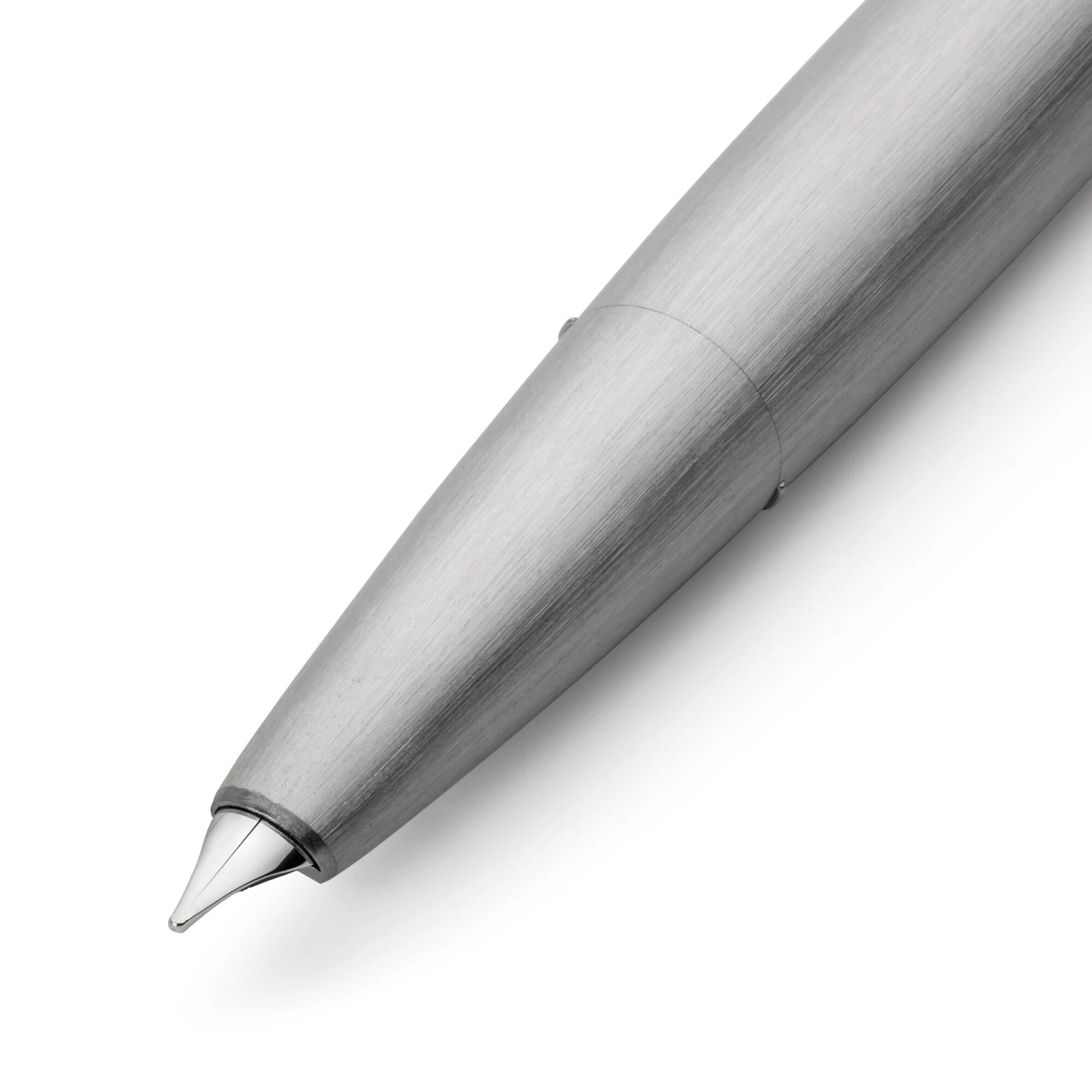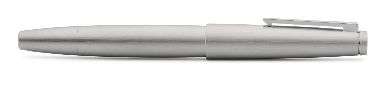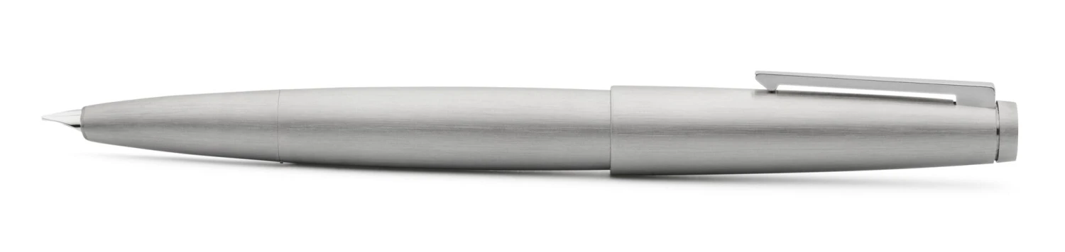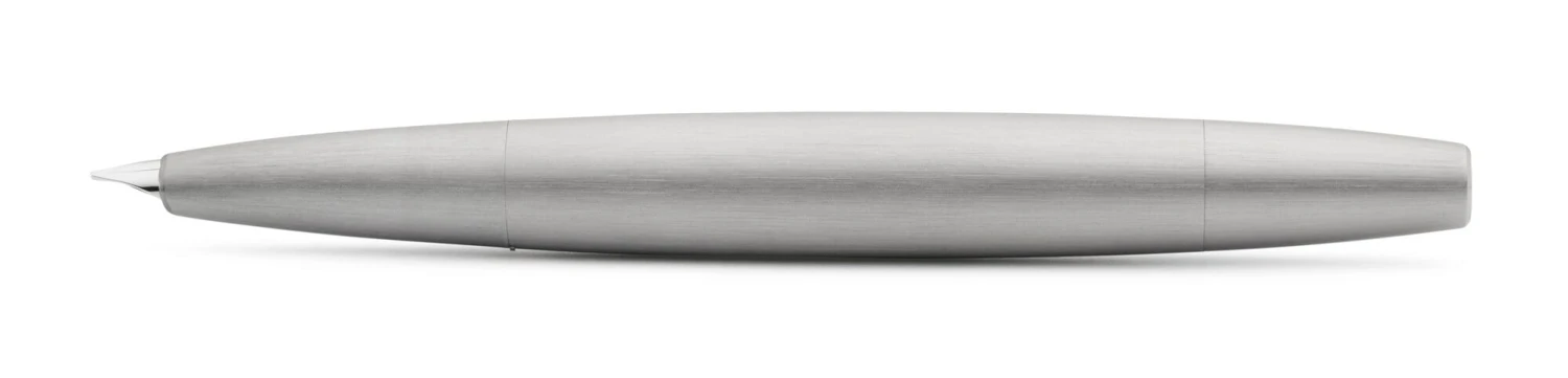 Trotz seiner formalen Reminiszenz an namhafte Füllfederhalter der 1950er Jahre sieht man diesem Modell nicht an, dass es schon 1966 von Gerd A. Müller entworfen wurde, aber es erschließt sich sofort, warum dieses Modell „2000“ getauft wurde. Wir bieten Ihnen eine baugleiche Variante desselben an, welche sich von ihrem Vorbild darin unterscheidet, dass der von uns angebotene Lamy 2000 komplett aus Edelstahl besteht – und deshalb auch ein anderes Gewicht auf die Waage bringt.