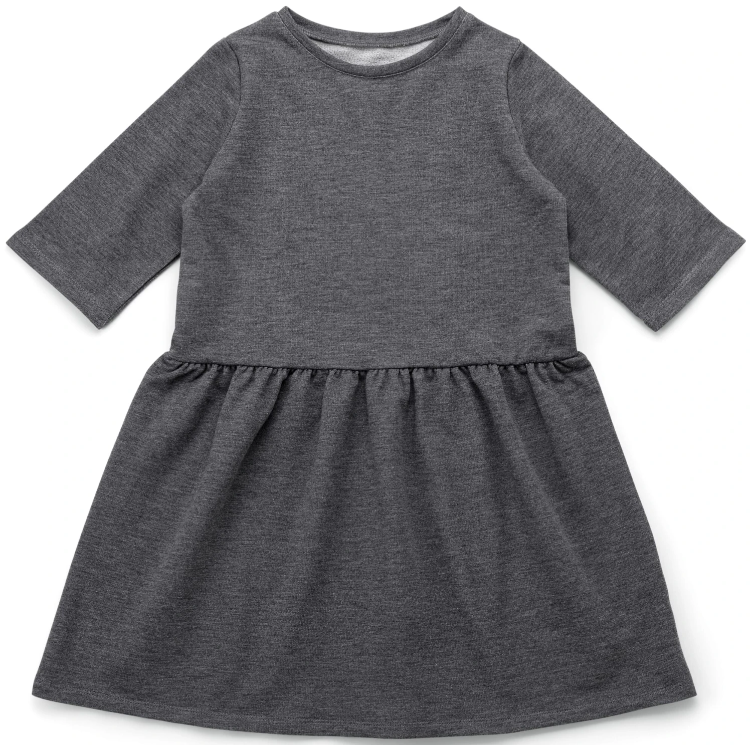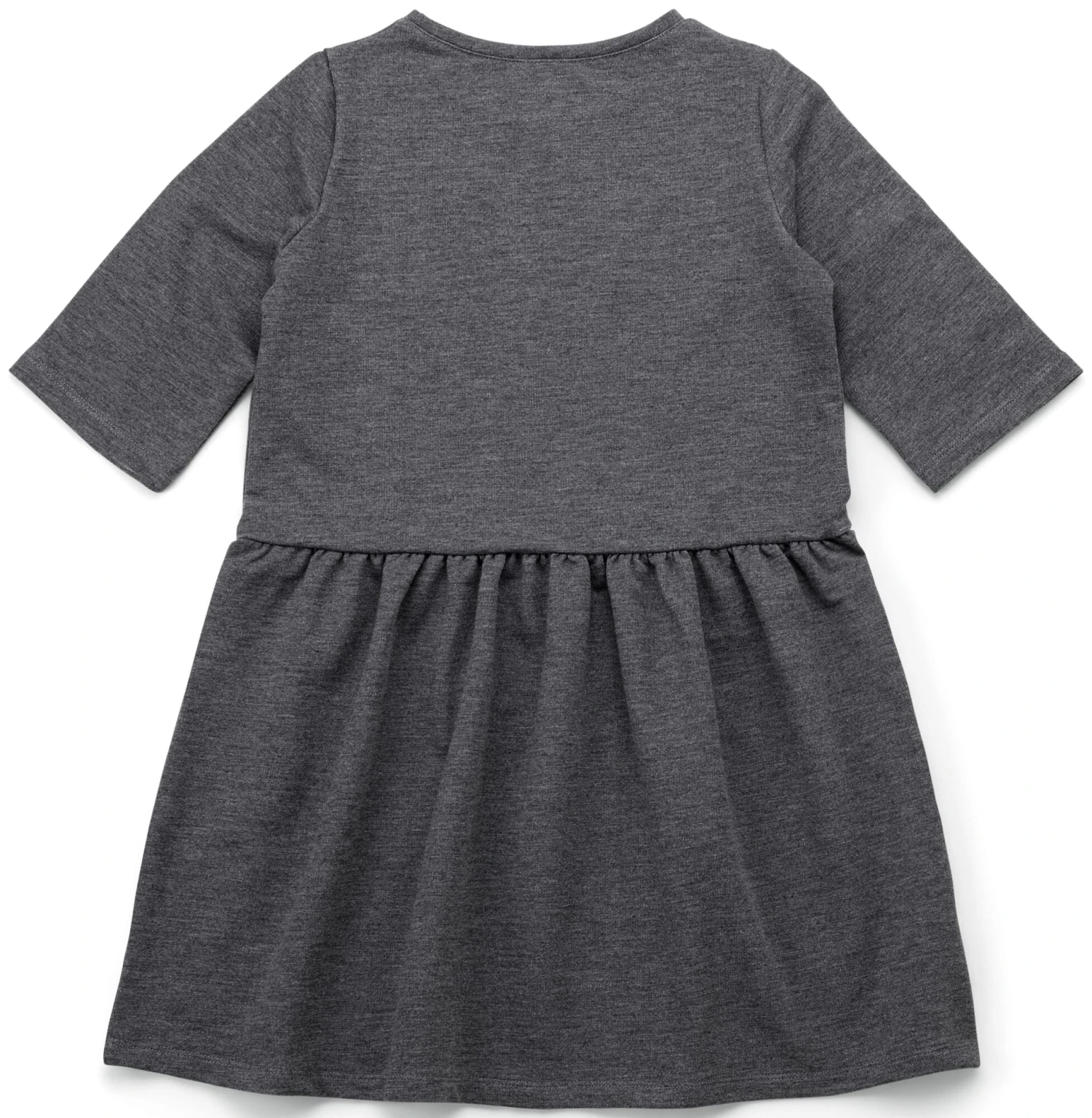 Kinder brauchen bequeme und zugleich strapazierbare Kleidungsstücke, die ihnen Bewegungsspielraum für alle Aktivitäten ihres bunten Alltags bieten. So wie dieses schlichte Kleid, das wir aus einem griffigen French-Terry-Sweat konfektionieren lassen. Dabei handelt es sich um eine robuste, formbeständige und pflegeleichte Sweatware, die die Eigenschaften eines leichten Single Jerseys mit denen eines schweren Sweatshirtstoffs vereint. Der Jersey besteht vollständig aus kontrolliert biologisch angebauter Baumwolle. Er hat einen weichen Griff, ist hautsympathisch und dehnbar, was für einen hohen Tragekomfort sorgt. Ausgestattet ist das Kleid mit einem Rundhalsausschnitt und dreiviertellangen Ärmeln. Für mehr Bewegungsfreiheit ist der Rock unterhalb der Taille angekräuselt angesetzt. Das Jerseykleid ist ein idealer Begleiter für die Übergangszeit, denn es lässt sich sowohl solo als auch kombiniert mit Leggings oder einer schmal geschnittenen Hose darunter tragen.