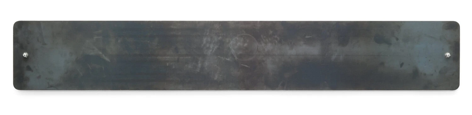 Senkrecht neben der Tür montiert und mit den passenden, starken Magneten ausgestattet, hält diese Leiste aus warmgewalztem Rohstahl Notizen (wie den Einkaufszettel), Visitenkarten, ein- und ausgehende Korrespondenz und nicht zuletzt all die Dinge vor, die man beim Verlassen der Wohnung oder des Hauses braucht und oft genug hektisch und auf den letzten Drücker („Wo sind die Eintrittskarten für die Oper?“, „Hat jemand den Autoschlüssel gesehen?“) sucht.