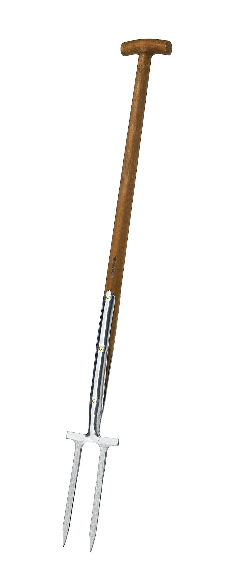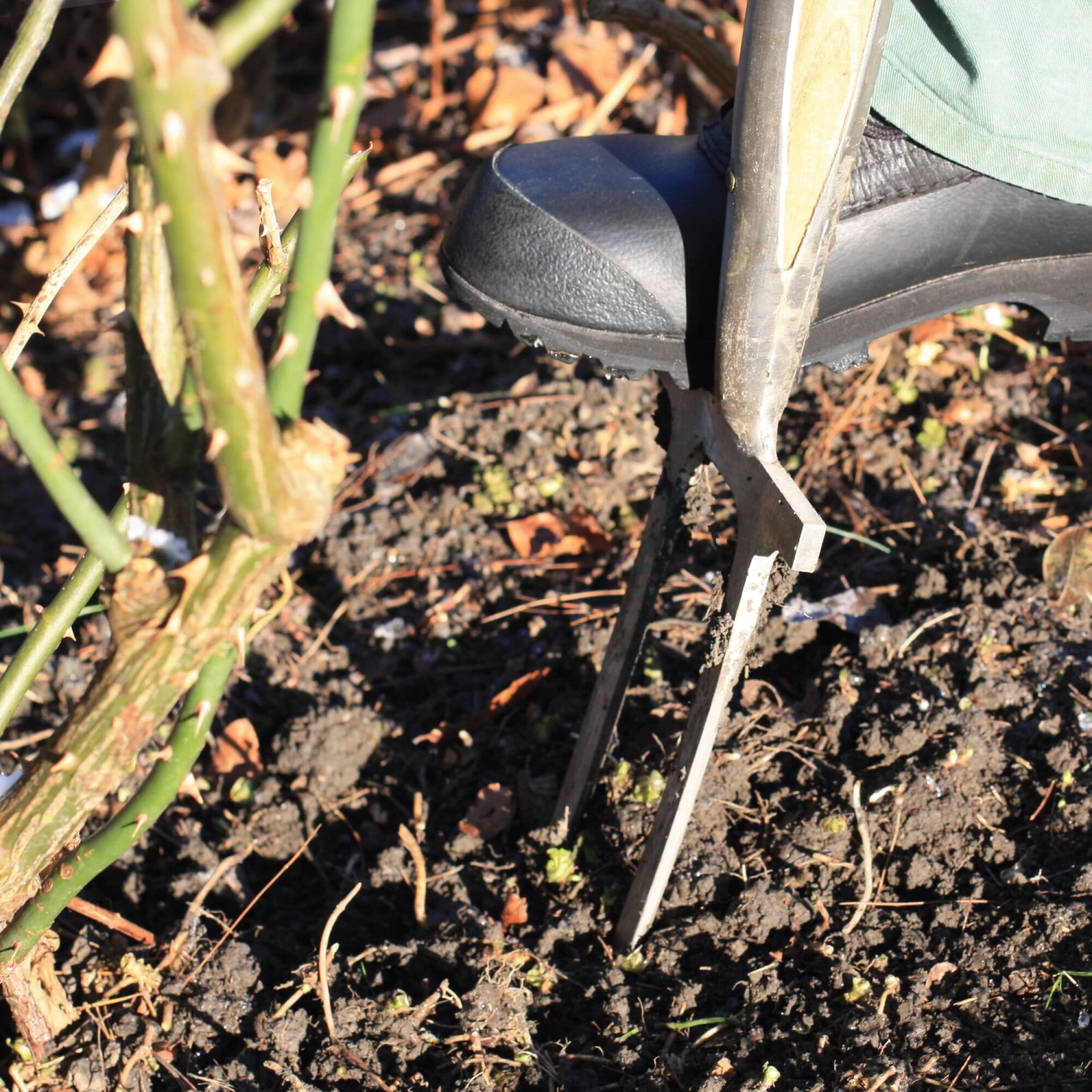 Die zweizinkige Rosengabel ist ein altbewährtes Gerät zur Pflege von Rosen. Mit den beiden starken, extralangen Zinken lassen sich auch lehmige Böden bis zum tiefreichenden Pfahlwurzelwerk der Pflanzen schonend lockern und belüften.