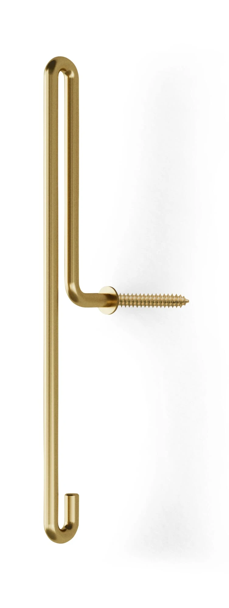 Formschöner Wandhaken – hier in seiner großen Form – in verschiedenen Materialien und Oberflächen. Die Form stellt eine zweifache Nutzung bereit: am unteren Ende und am oberen weich geformten Radius. Nutzbar für Kleidung in der Garderobe oder auch für Handtücher im Badezimmer.
