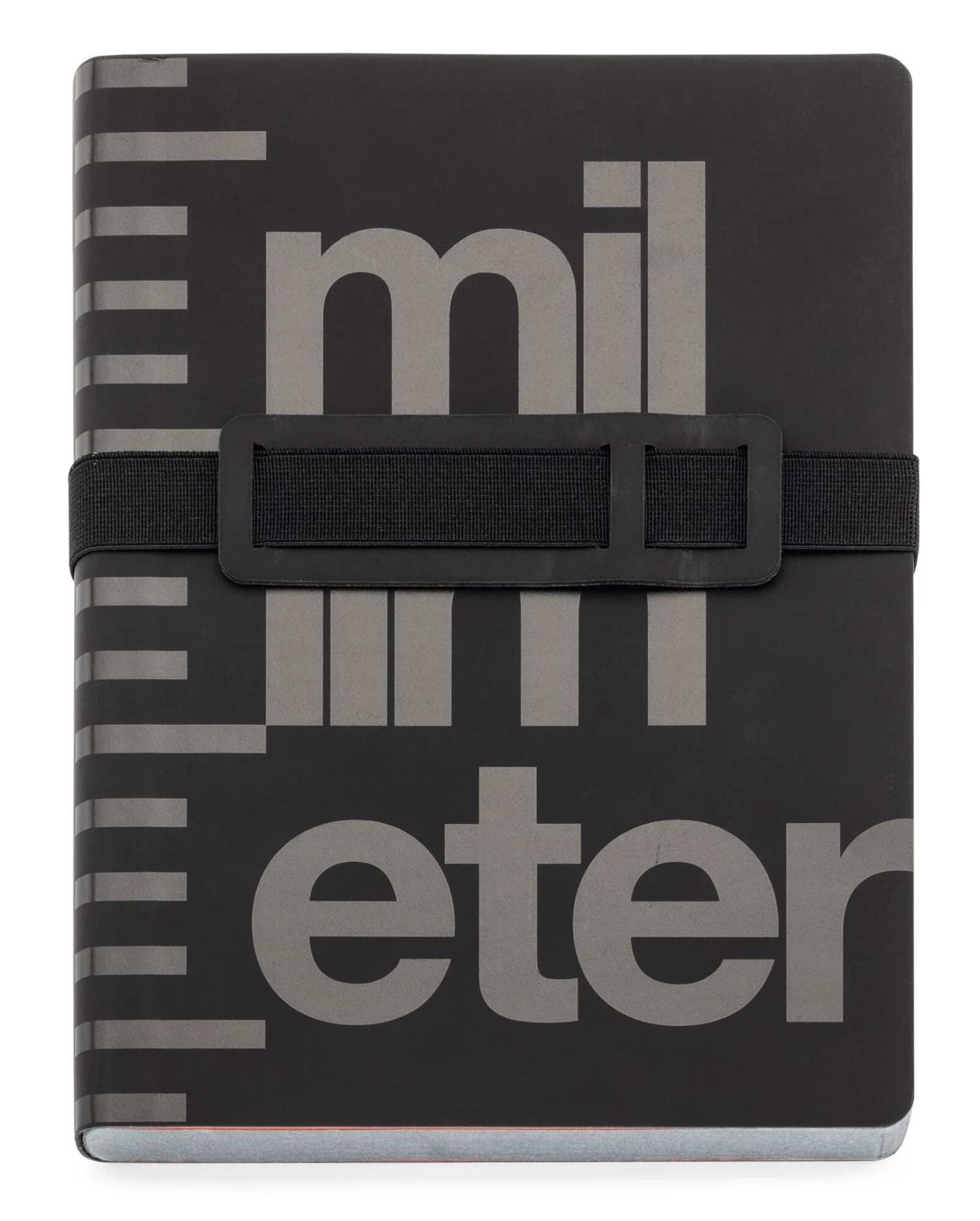 Notizbuch und Ordnungshelfer mit 256 Seiten: Ob Architekten, Ingenieure, Mathematiker oder Typographen – dieses Notizbuch mit neonorangefarbenem Millimeterpapier ist für alle, die den Zentimeter als Maßeinheit nicht ernst nehmen können. Ergänzt um ein elastisches Band, das Schreibgerät und Smartphone hält, wird aus beidem das komplette Organisationscenter.