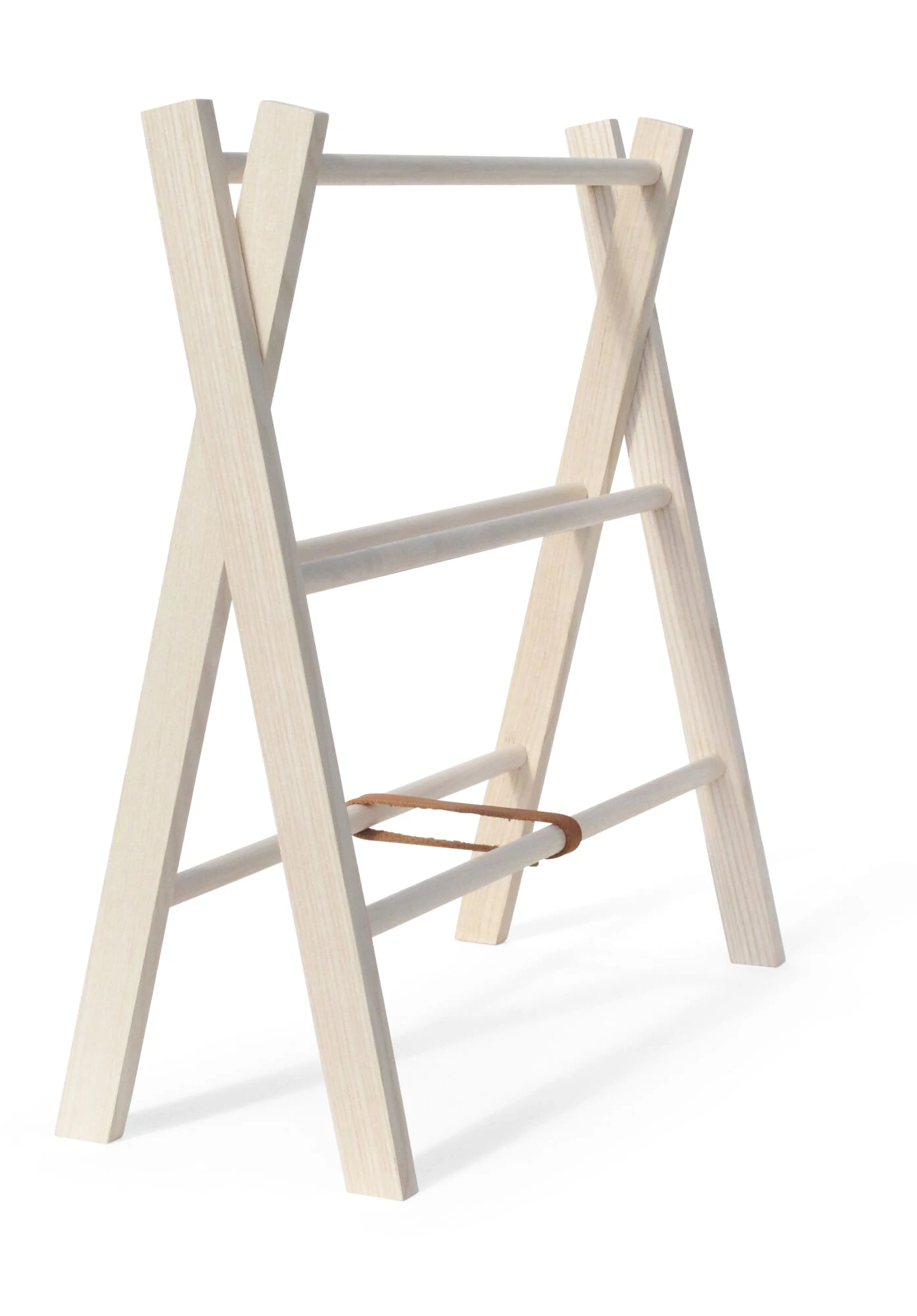 Material: Esche (Herkunft: Deutschland), Rundstäbe: Ahorn (Herkunft: Deutschland), Lederriemen