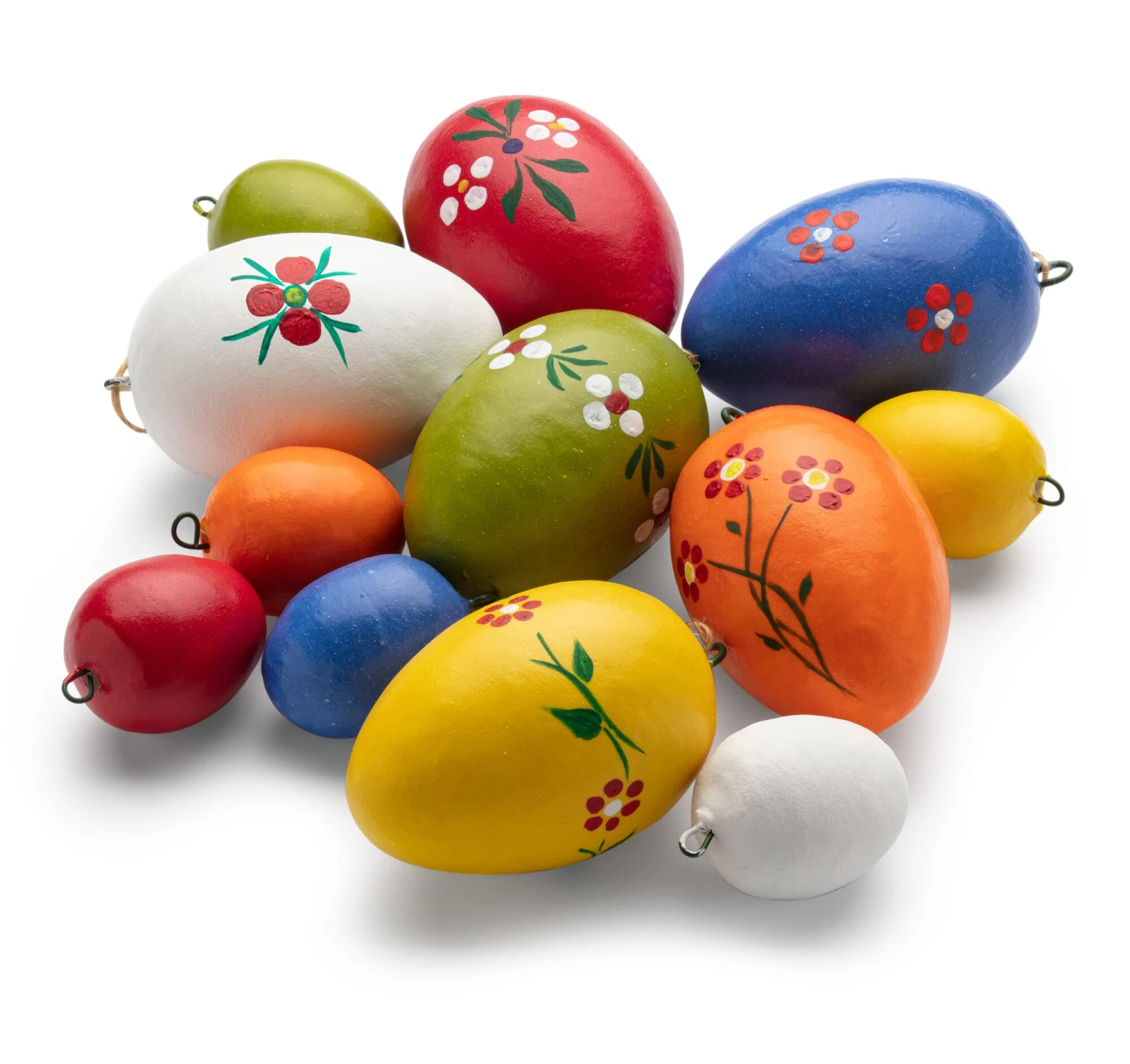 Ein Tauchbad in gefärbter Gelatine härtet die Ostereier aus Watte aus und verleiht ihnen ihre dekorative Grundfarbe. Mithilfe feiner Nadeln werden ebenfalls in Handarbeit die stilisierten Blumenmotive aufgetupft – so entsteht jedes Osterei als kleines, feines Unikat.
