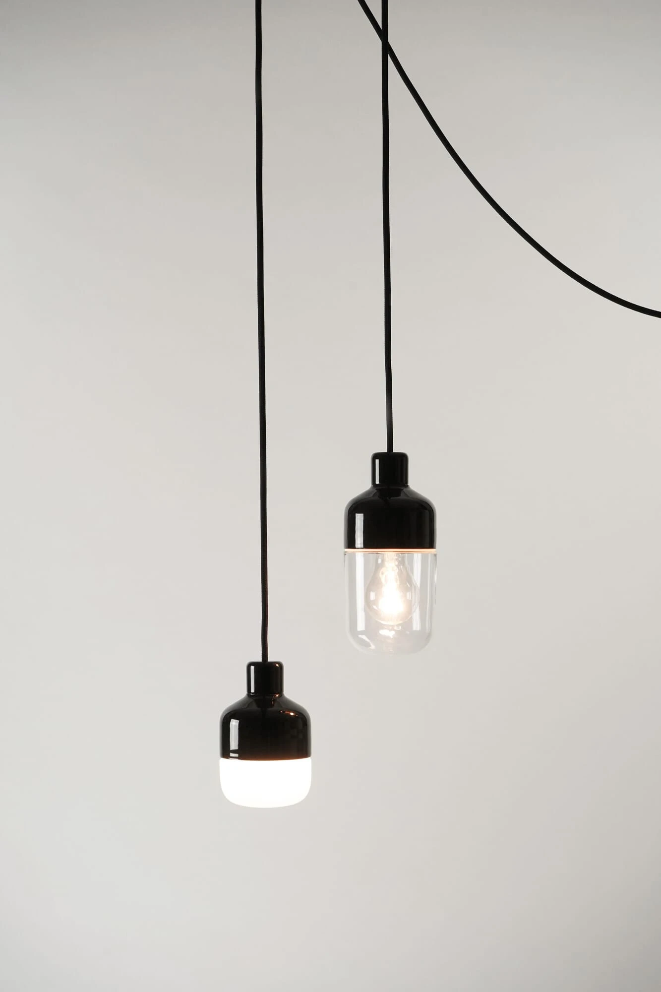 Formschöne, zierliche Pendelleuchte mit einem Porzellan- und Glaskörper. Die Leuchte liefert durch den klaren oder mattweißen Glasschirm ein allseitig abstrahlendes Licht und eignet sich ideal für kleinere Räume und Flure überkopfhoch montiert oder auch als Beleuchtung von Essplätzen oder Thekenplatten.