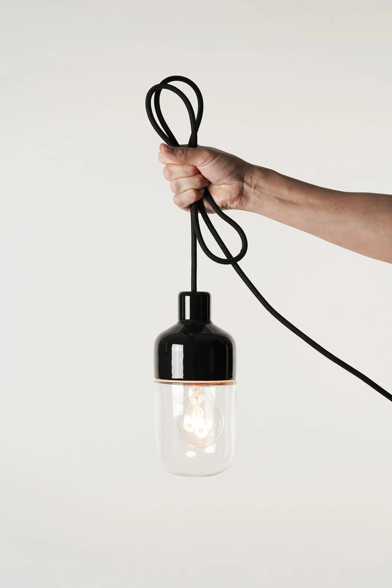 Material: Sockel: Porzellan; Schirm: Glas; Dichtung: Silikon, Textilkabel