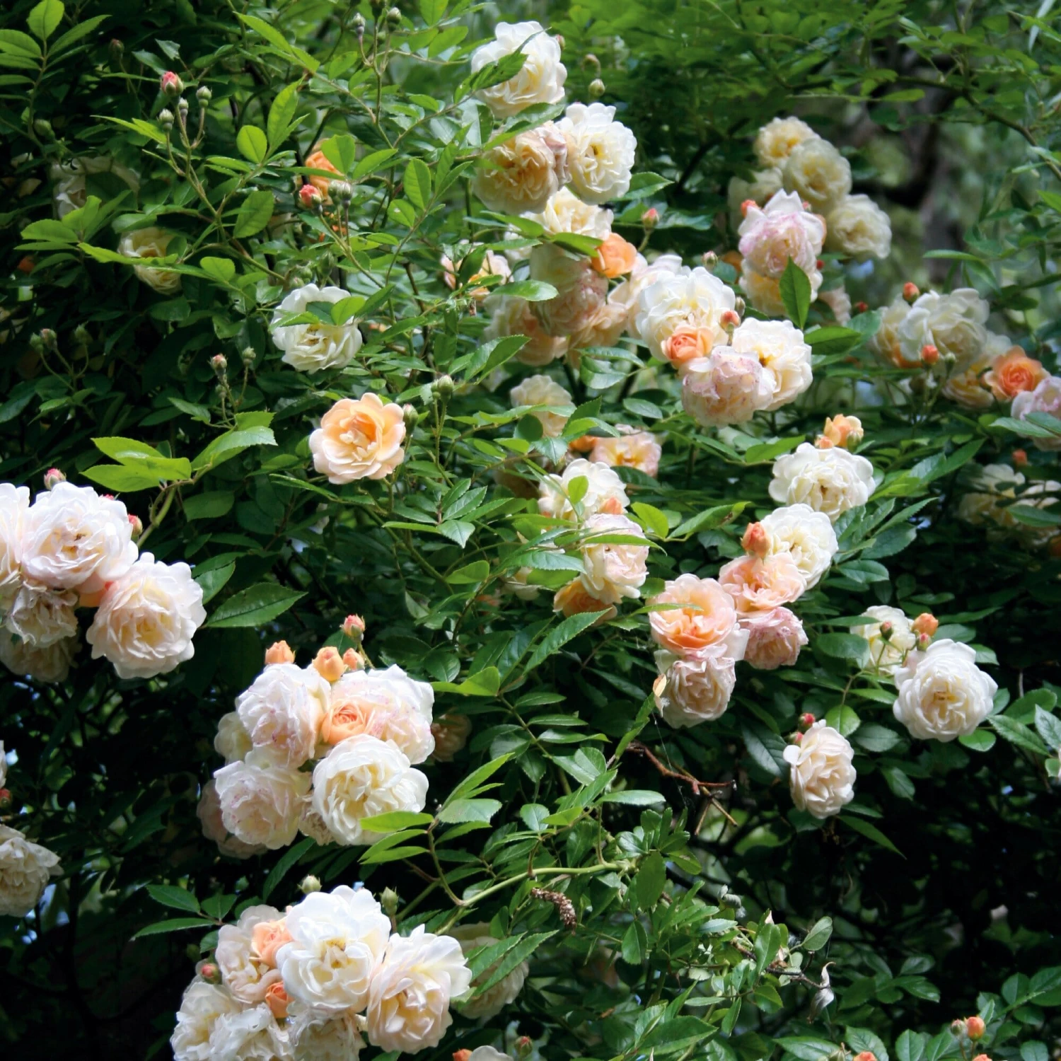 Im Gegensatz zu den eigentlichen Kletterrosen haben die Rambler weiche und elastische Triebe und können klettern, ohne hochgebunden werden zu müssen. Sie erreichen dabei beachtliche Höhen (wenn man sie beispielsweise in einen Baum wachsen lässt) und müssen kaum geschnitten werden. Sie blühen am zweijährigen Holz und können – in Ermangelung einer Kletterhilfe – ebenso gut kriechend den Boden bedecken. Obwohl Ramblerrosen bereits im frühen 19. Jahrhundert gezüchtet wurden, sind sie heute nur wenig bekannt. Ihrer zahlreichen Vorzüge wegen und weil wir meinen, dass diese Rosen mehr Beachtung verdienen, bieten wir ein kleines Sortiment an.