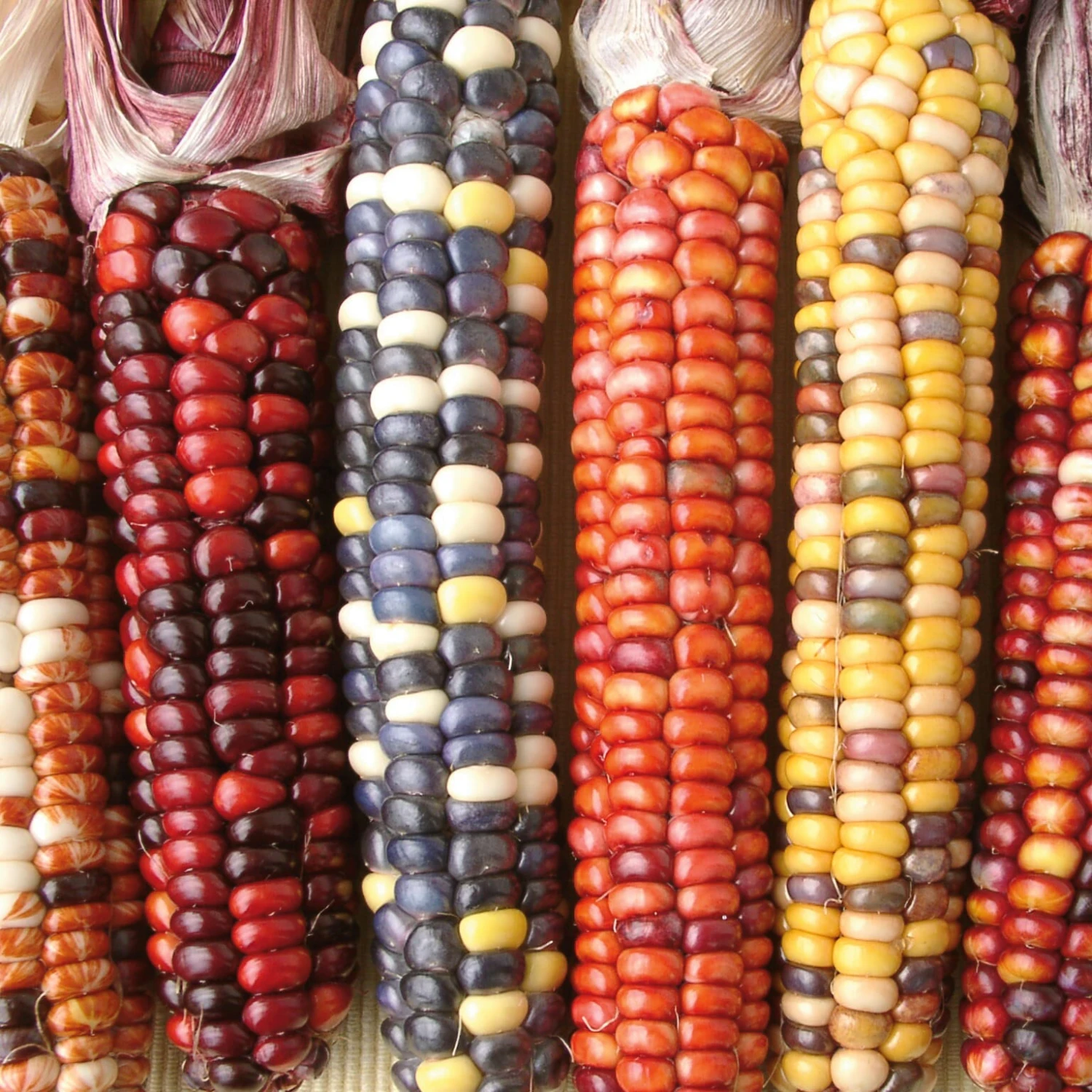 Mais wird in Amerika seit 2.500 Jahren angebaut und war lange eines der wichtigsten Nahrungsmittel der dortigen Bevölkerung. Diese Sorte mit den bunten Körnern geht auf eine traditionelle indigene Sorte zurück. Sie reift früh und gedeiht auch bei schlechterem Wetter. Die jungen Kolben können als Gemüsemais gegrillt werden.