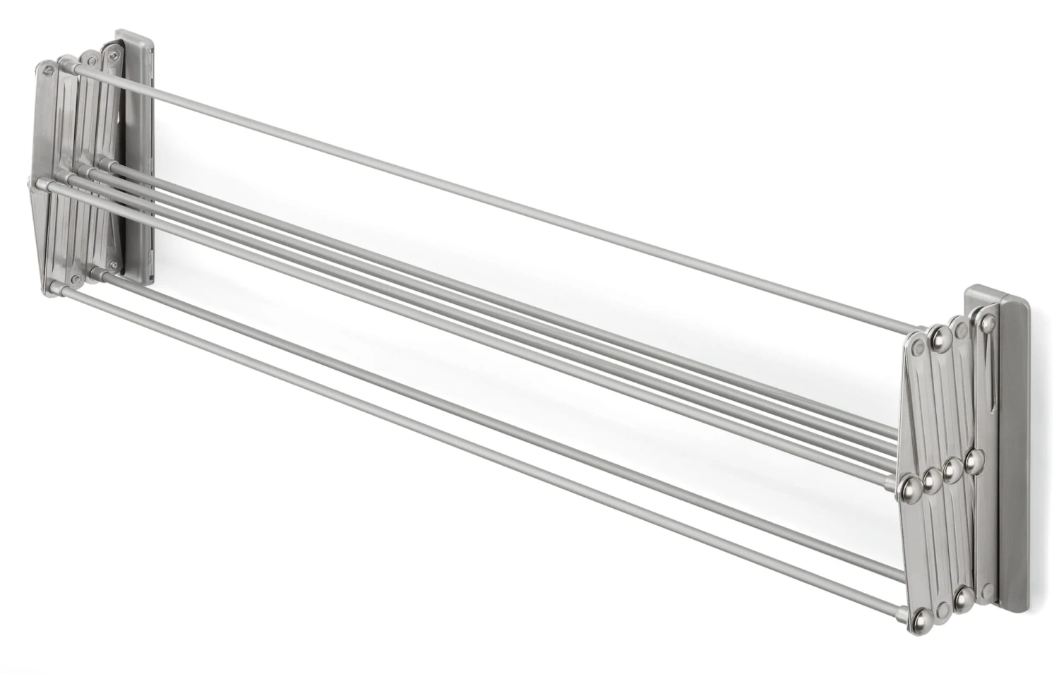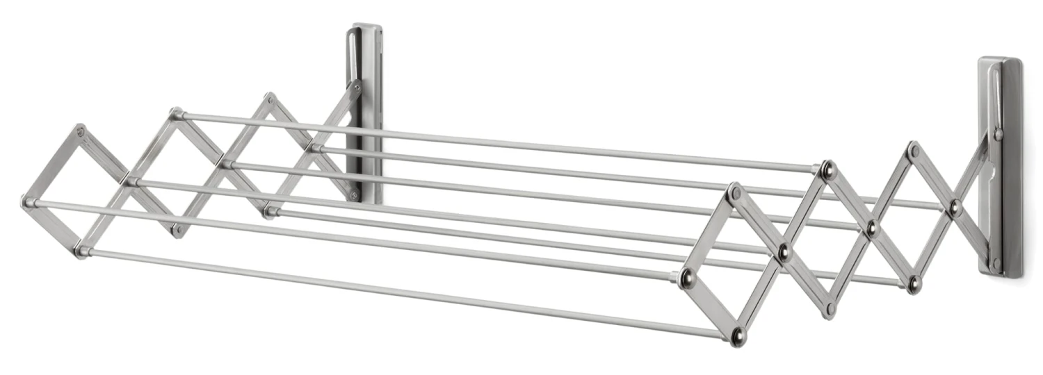 Seit den 1950er Jahren oft kopiert und – bis hin zu Plastikversionen – entstellt, dabei immer unerreicht: Der „Ruckzuck“ des 1923 im österreichischen Bad Ischl gegründeten Familienunternehmens Artweger ist der Klassiker unter den Scherenwäschetrocknern. Ein einfacher Handgriff und 20 kg Wäsche finden ihren Platz auf dieser stabilen Trockenhilfe. Zusammengeschoben ragt er nur 9 cm vor, bei Bedarf wird er auf 46 cm ausgezogen und nimmt dann auf insgesamt 7 stabilen Stäben fast 5,2 Meter Wäsche auf. Die Scherenkonstruktion aus Aluminium sowie die kunststoffummantelten Stahlstäbe ermöglichen die Verwendung des Trockners auch im Freien.