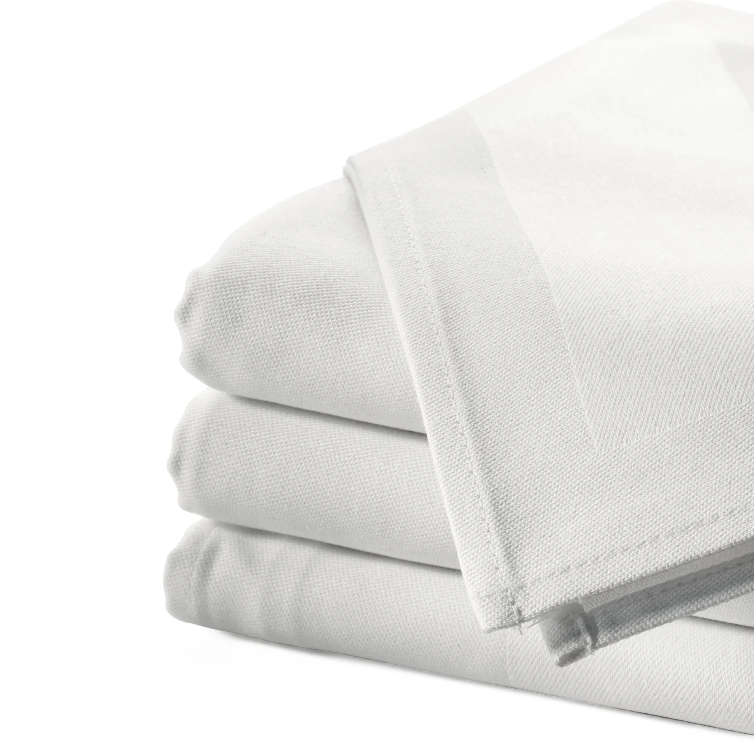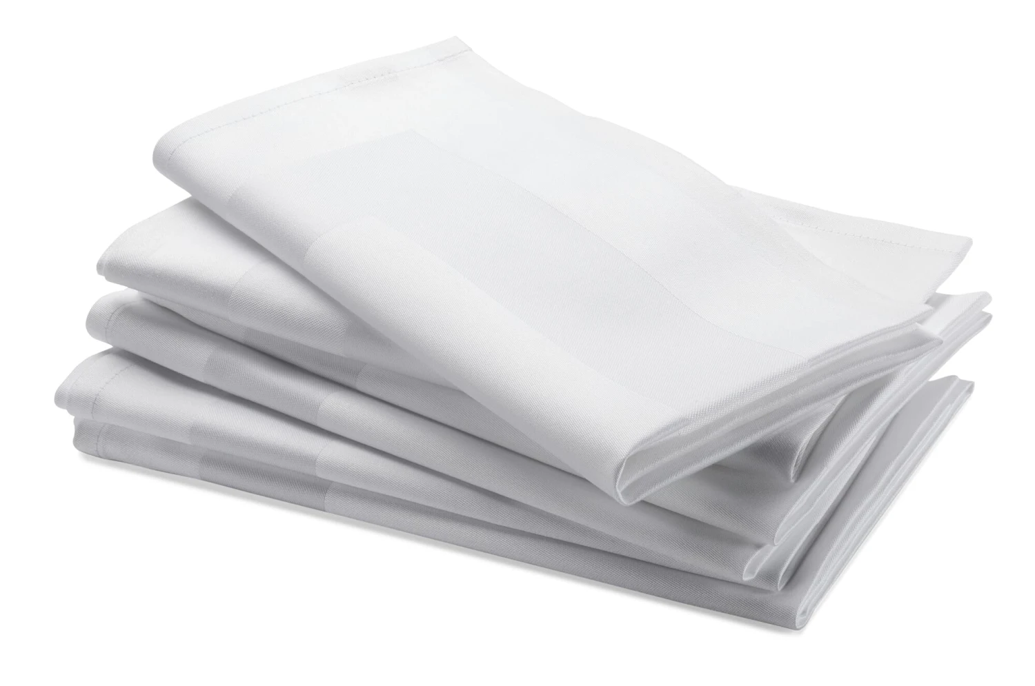 Stoffservietten in Gastronomiequalität – reinweiß, griffig, unverwüstlich und natürlich kochfest. Aus merzerisierter Baumwolle und mit Atlaskante verarbeitet – jedem Papiertuch himmelhoch überlegen.