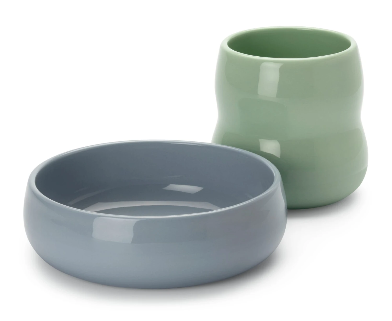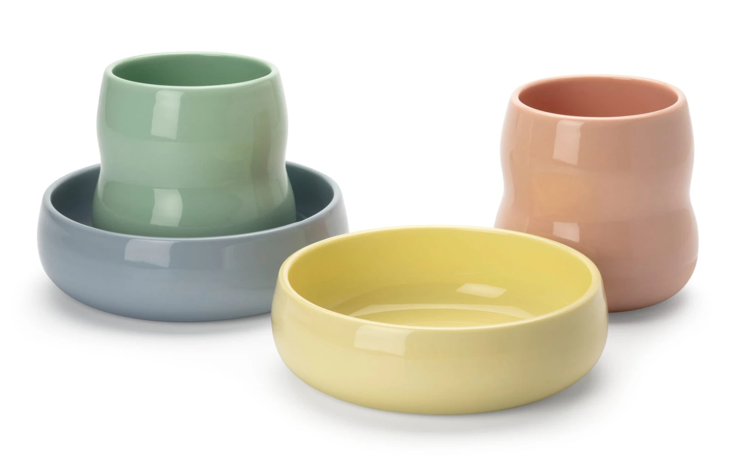 Dem Nachwuchs bietet sich übrigens ein weiterer Vorteil: Auch der Becher weist einen nach innen gewölbten Boden auf. In die Schale gestellt, findet er dadurch besseren Halt – eine hilfreiche Konstruktion, wenn der Sprössling beim Tischabräumen helfen möchte.