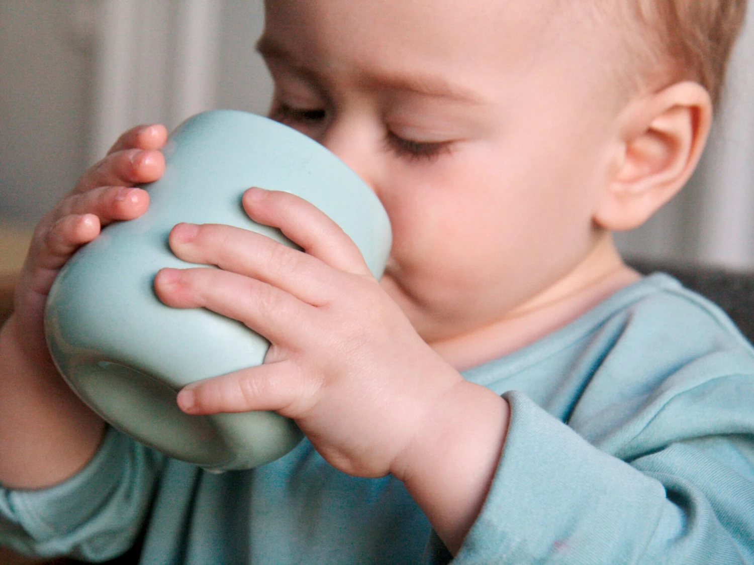 Die Taillierung des Bechers verhindert, dass das Gefäß dem Nachwuchs aus den Händen gleitet, und erleichtert dem Sprössling damit sowohl den Zugriff als auch das Festhalten, zudem schwappt dank der verjüngten Mitte die Flüssigkeit beim Trinken weniger schnell über.