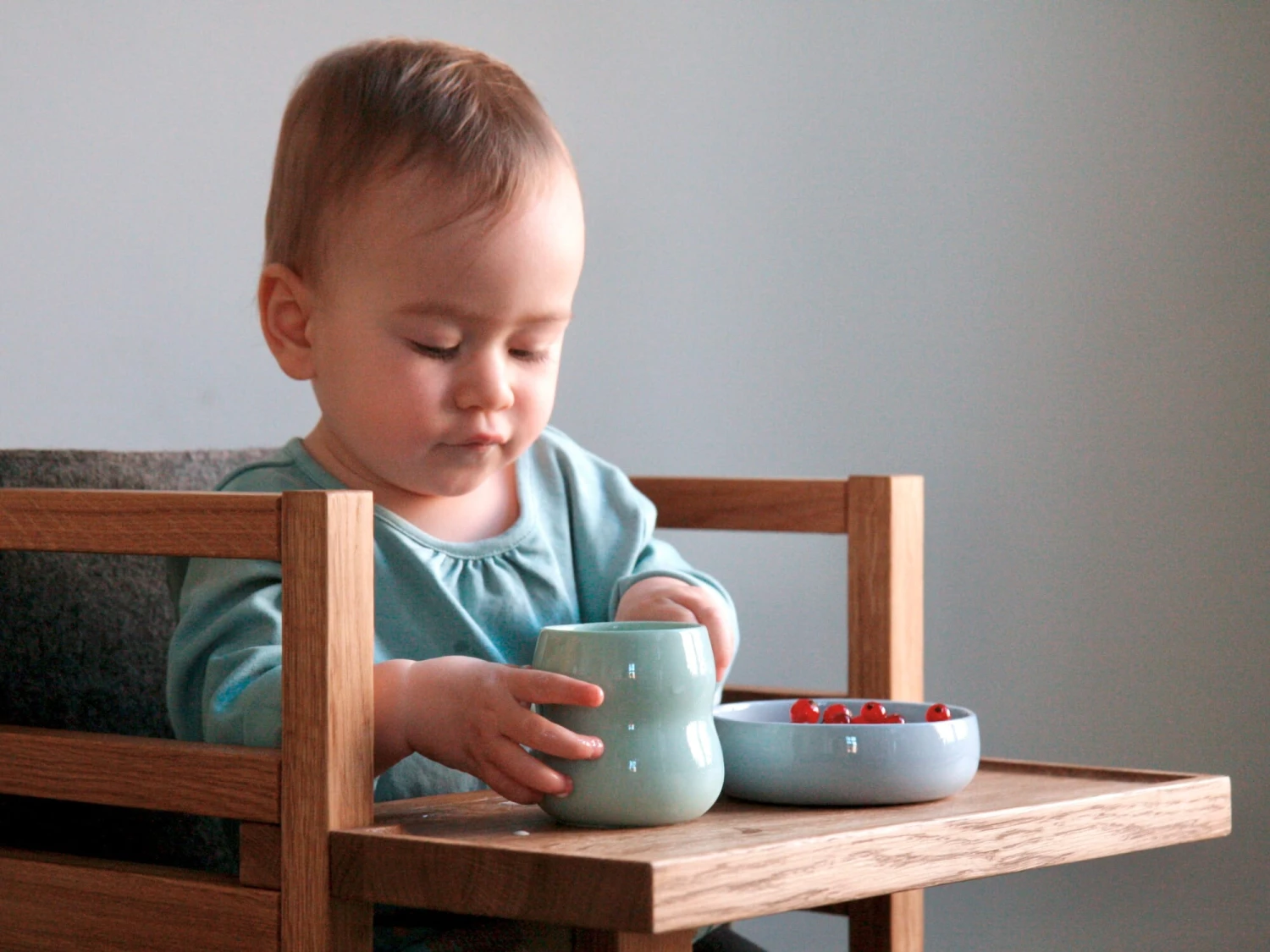 Das Leben mit Kindern verlangt nach handfesten kindgerechten Lösungen. Daher entwarf die Designerin ein Geschirr, das in Material, Gestaltung und Nachhaltigkeit sowohl ihren Ansprüchen als auch den Bedürfnissen von Kindern entspricht. Und so wird ihr Geschirr aus robustem, hochwertigem Porzellan gefertigt, in einem für Kinderhände optimierten, griffigen Design, das zugleich mit seiner puristischen Ästhetik überzeugt. Die Herstellung der Becher und Schalen gewährleistet eine süddeutsche Keramik-Manufaktur. Vom Hohlguss in Gipsformen über das Putzen und Entgraten bis hin zur Teilglasur erfolgen hier alle Arbeitsschritte von Hand. Am Ende steht ein Kindergeschirr, das ohne Weiteres auch von Erwachsenen verwendet werden kann – über Generationen hinweg.