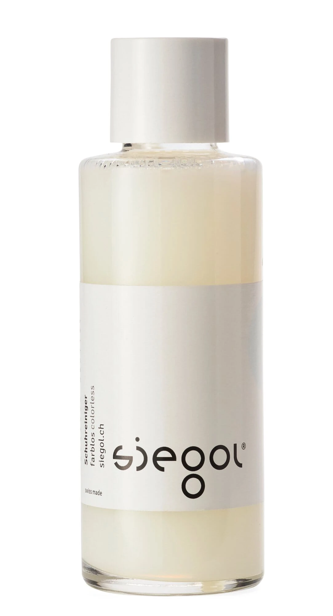 Der flüssige Schuhreiniger von Siegol® eignet sich für alle Lederschuhe, von der Sandale bis zum Stiefel. Er reinigt schonend Glattleder und Rauleder, ist dabei umweltfreundlich, weil er ohne Tenside auskommt und stattdessen Kokosmilch und natürliche Emulgatoren auf Basis von Eiweiß enthält. Zudem wirkt er geruchsmindernd und erhält das Leder weich. Vor dem Gebrauch den Schuhreiniger gut schütteln, zu gleichen Teilen mit Wasser verdünnen und mit Lappen, Schwamm oder Bürste das Leder nass säubern. Danach kräftig mit der Bürste ausreiben und den Schuh auf einem Schuhspanner trocknen lassen.