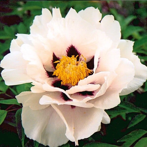 Die Sorten dieser Gruppe besitzen durch die Einkreuzung der chinesischen Wildform Paeonia rockii die wunderschöne dunkle Farbzeichnung in der Blütenmitte und die verschwenderische Blütenfülle: eingewachsene Pflanzen können weit über 100 Einzelblüten aufweisen. Die Blüten stehen an kräftigen Stielen aufrecht über dem Laub. Die Rockii-Hybriden zählen zu den robustesten und wüchsigsten Strauchpäonien und sind an unser mitteleuropäisches Klima besonders gut angepaßt. Von eher breitem Wuchs sind sie sehr standfest, und sie sind gut schnittverträglich. Das feingliedrige Laub ziert auch nach der Blüte die harmonisch wachsenden Büsche.