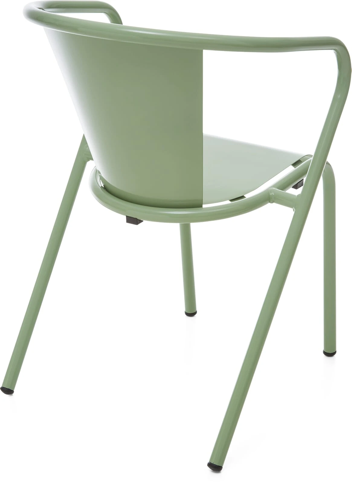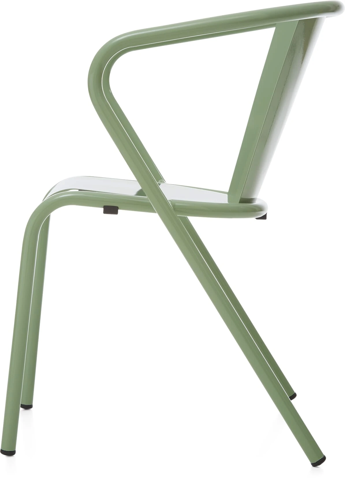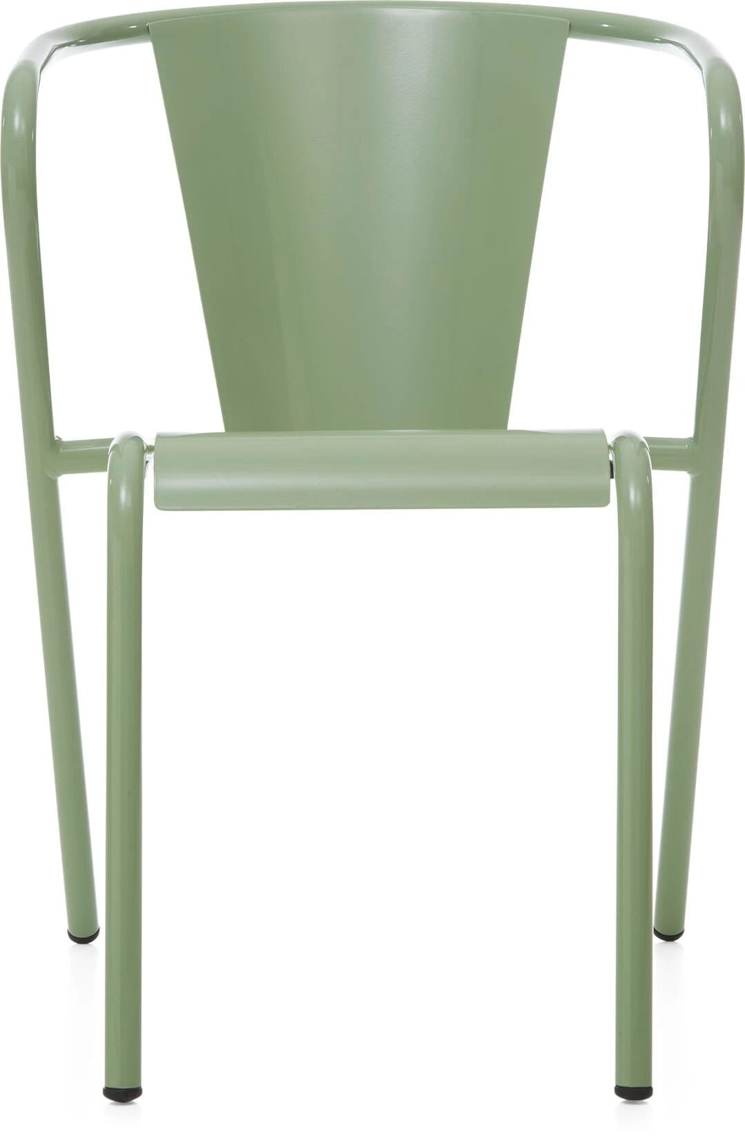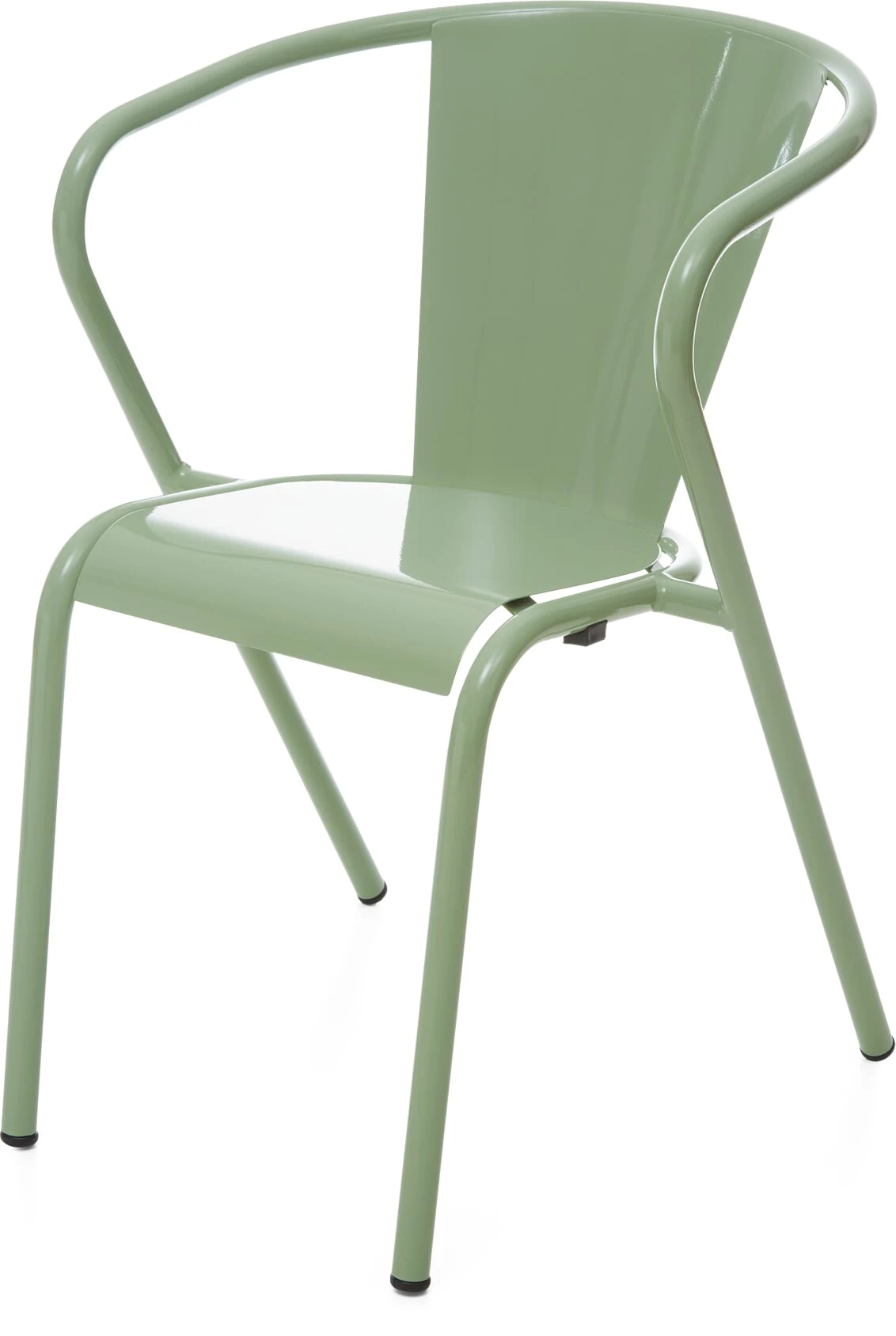 Portugiesische Ikone: Seit den 1950er-Jahren produziert und aus dem öffentlichen Bild Portugals nicht wegzudenken ist dieser schöne Stuhl aus Stahl, wetterfest pulverbeschichtet. Dank seiner Formgebung und seinem leicht abfallenden Sitzwinkel sitzt man in ihm sehr komfortabel und entspannt – nicht nur beim Café Galão. Schöne Sitzgelegenheit für den Ess-, Lese- und Sonnenplatz. In der Auswahl an attraktiven Farben verbirgt sich hinter den Versionen Perlweiß, Taubenblau und Blassgrün eine Besonderheit: Sie gehören zu den Farben, die die Stadtverwaltung Lissabons als Farben zur öffentlichen Bestuhlung freigegeben hat.