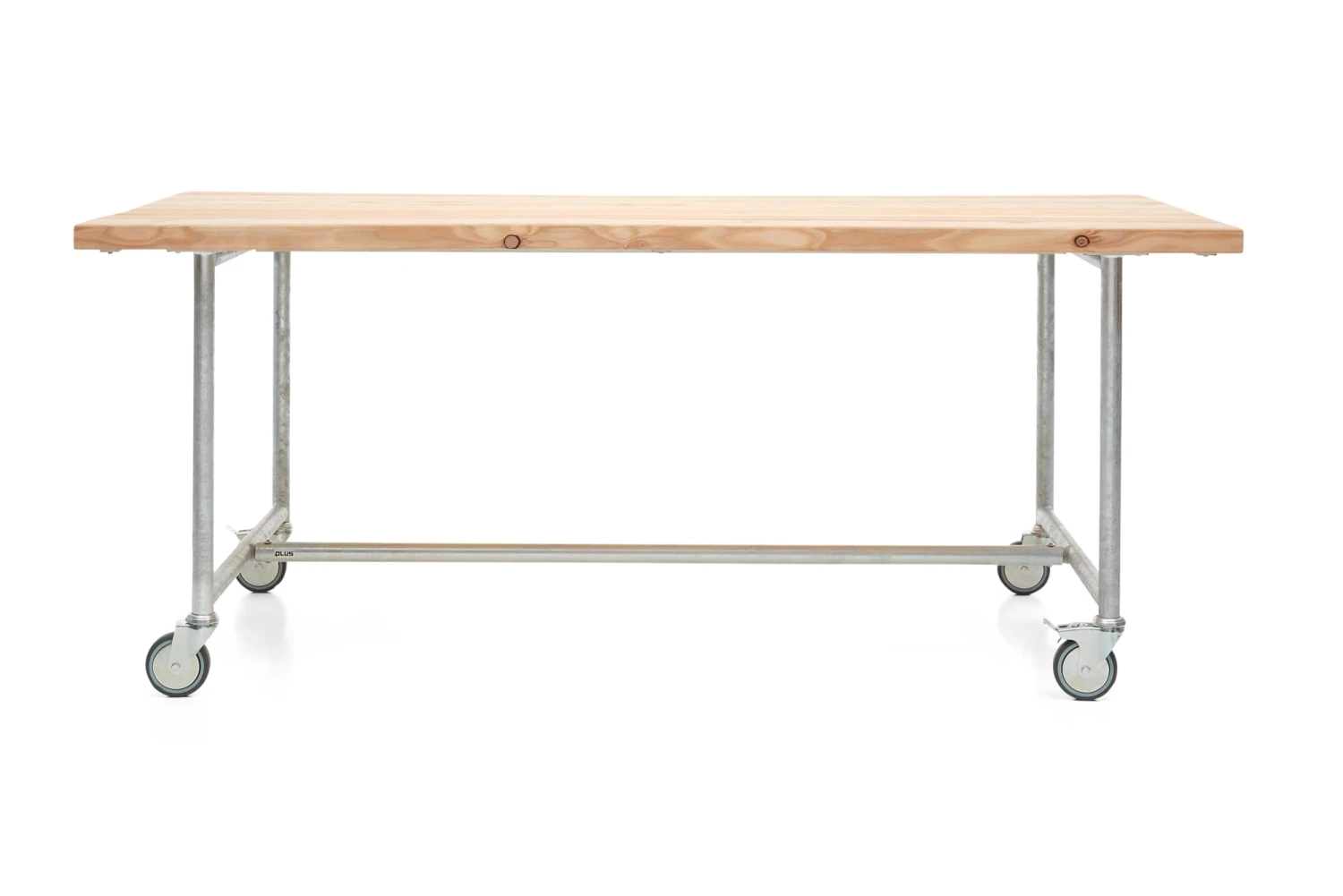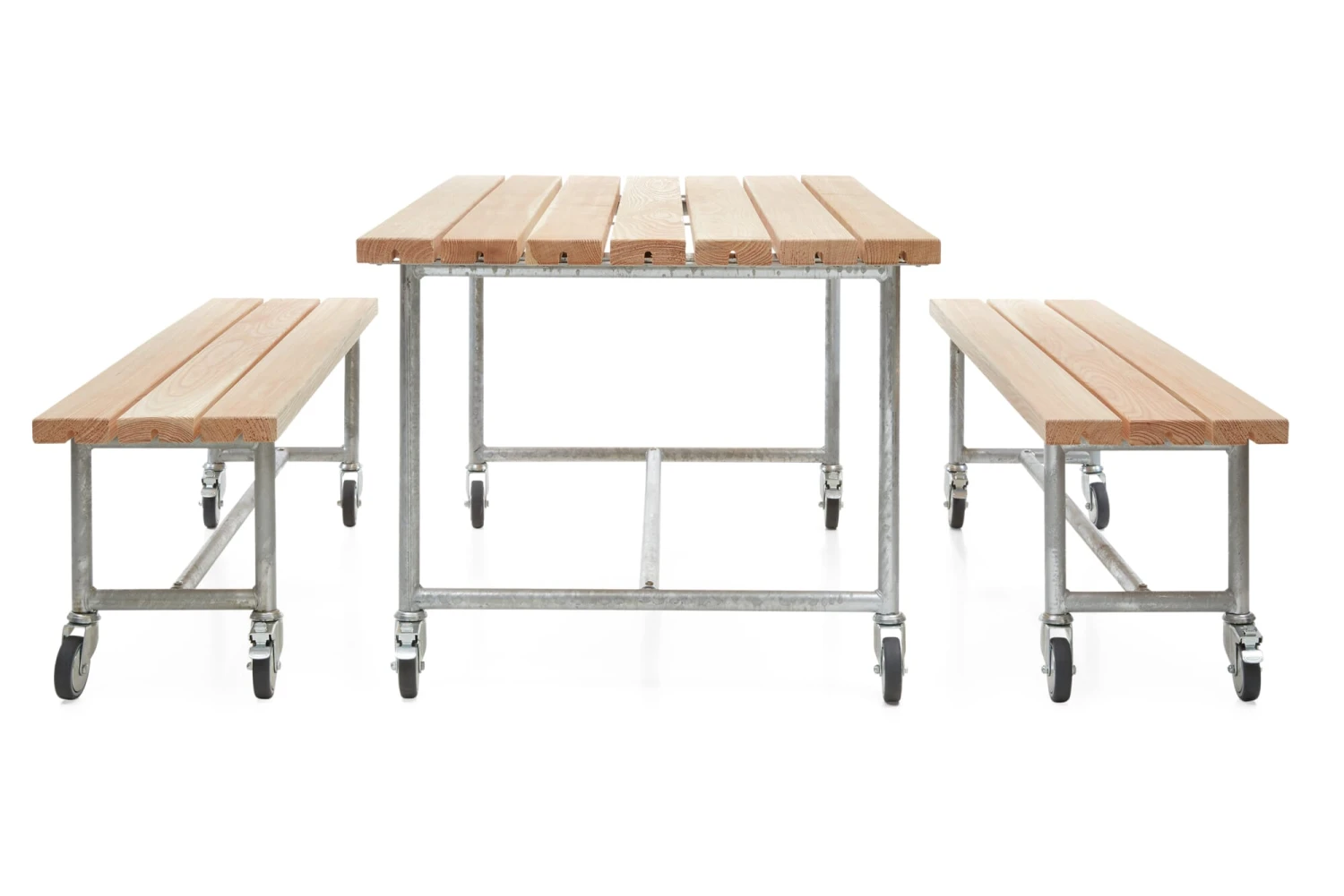 Robust und äußerst strapazierfähig: JÜTLAND zeigt mit seiner industriellen Bauweise auf den ersten Blick, was er kann. Das feuerverzinkte Stahlgestell und seine Beplankung aus druckimprägniertem Massivholz trotzen der Witterung. Der Tisch sowie die dazugehörende Bank sind auf ihren teilweise arretierbaren Rollen leicht in Hof und Garten zu bewegen. Das Möbel wird demontiert geliefert – Stahlgestell sowie die Beplankung müssen einzeln montiert werden.