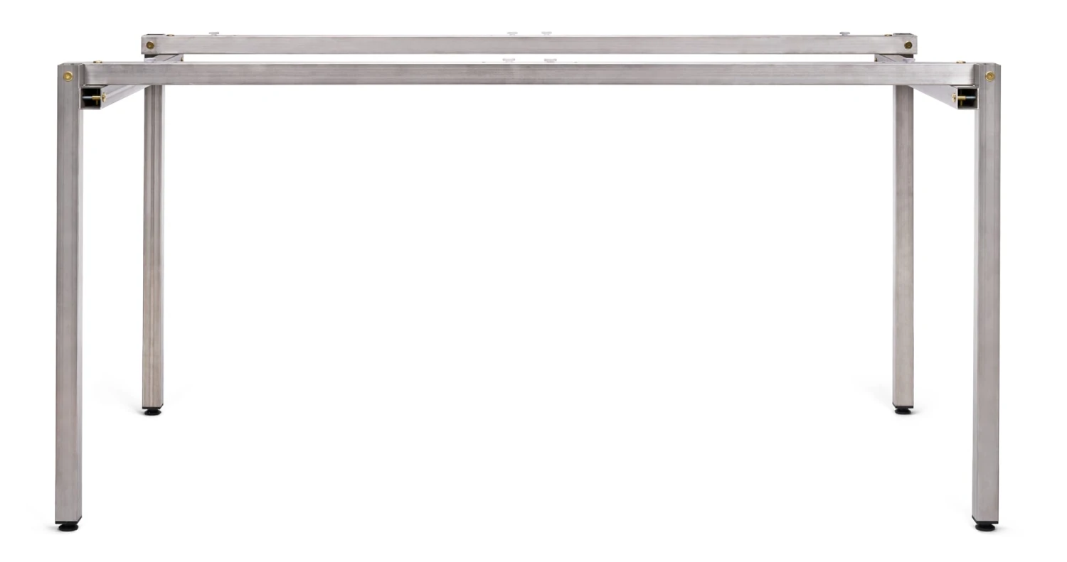 - Stabiles Tischgestell aus acht stählernen Quadratrohren