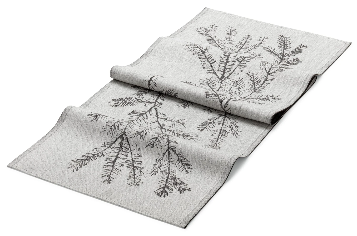 Die Illustration aus der Feder von Teemu Järvi scheint sich den Jahreszeiten anzupassen: Im Herbst sorgt der Tischläufer für herbstliche Stimmung, in der Adventszeit passt er zu Weihnachtskranz & Co., und genauso gut lässt er sich im Frühjahr und Sommer verwenden. Lapuan Kankurit verwendet Leinengarn aus bestem europäischem Langfaserflachs (mit dem Siegel Masters of Linen®). Der Anteil an Baumwolle (40%) sorgt für den weichen Griff des Gewebes. Mit einem mittleren Flächengewicht von 300 g/qm ist es recht robust und strapazierbar. Die jacquardgewebte Illustration zeigt sich auf der Rückseite in gegengleicher Farbe. Passende Tischsets und ein Geschirrtuch mit diesem Motiv finden Sie ebenfalls in unserem Sortiment.