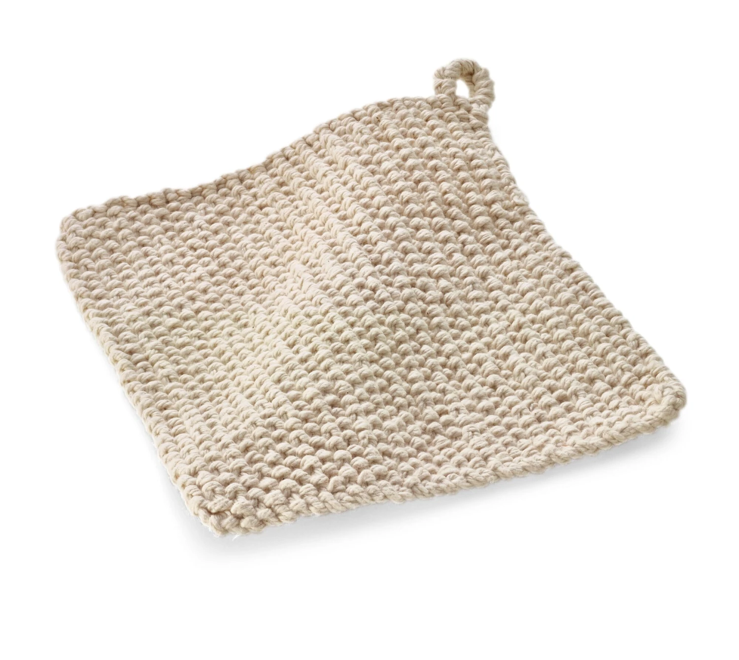 In den letzten Jahren hat uns der Markt mit Topflappen aus den unterschiedlichsten Materialien, leider meist aus Kunststoffen, und in den verschiedensten Formen beschert. Doch besinnen sich viele Küchentätige wieder auf den guten alten Topflappen, wie ihn Oma noch selbst gehäkelt und verwendet hat. Das liegt zum einen sicher an der DIY-Welle, die dem Stricken und Häkeln ordentlich Vorschub verschafft hat. Zum anderen können für diese Topflappen natürliche Materialien verwendet werden. Hier ist es naturbelassene Baumwolle, die eine kleine Gruppe südafrikanischer Frauen in Heim- und Handarbeit verhäkelt.
